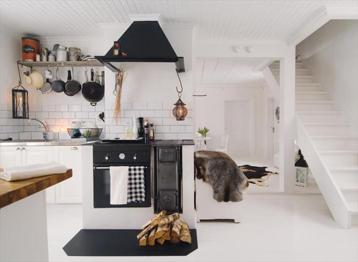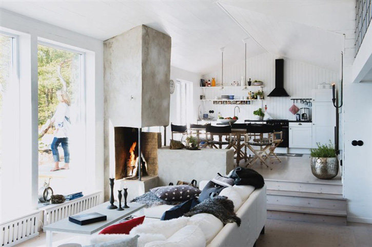 Stacey sent us in a reader request I wanted to tackle today and while it’s quite brief, I found it intriguing: “Hi! I’m not sure if you’ve done this one, but I’d love to see kitchen fireplaces…..thanks!” Easy enough request, but I immediately began to wonder how many photos I’d find of kitchens with fireplaces. I think it’s a bit odd to have a fireplace in a kitchen, which tends to be one of the warmest rooms in the house (if you cook that is). Although the more photos I found in my stash the more I thought how fab it would be to have a fireplace to make a kitchen even cosier. I’m sold!