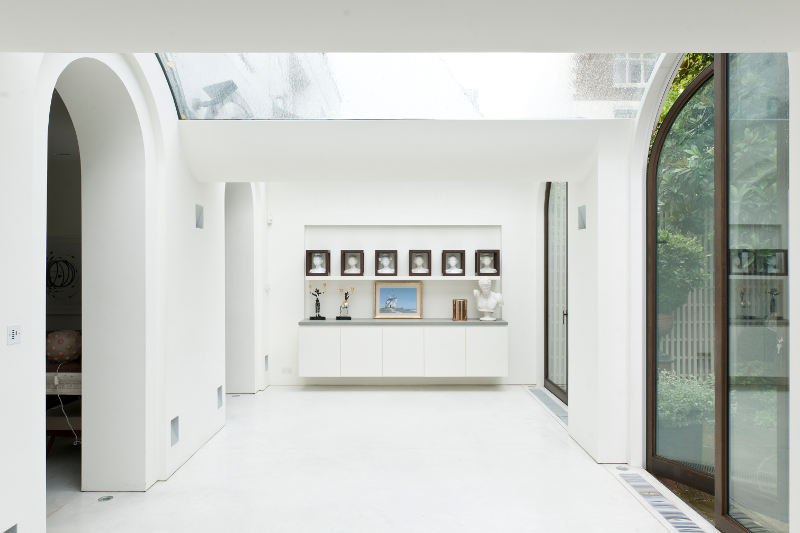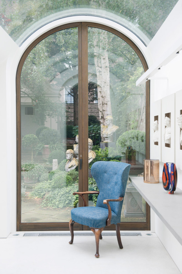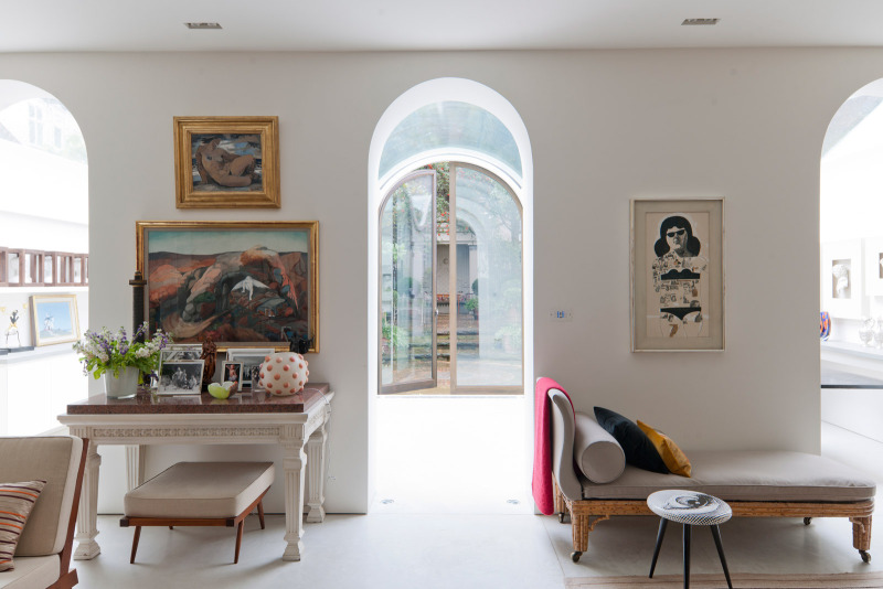 Like a theatre set of brilliant white, this modern extension to a double fronted mews house in Hyde Park, London allows the owners’ pieces to take centre stage. Art Deco meets decadence meets minalism with neoclassical whimsy and luxury. Sinuous and sensual and at times stark. Part folly, part living space, part sculpture. I have a vision of an operatic fat lady in vintage Paco Rabanne and house slippers gliding across a minimalist cube towards a Fornasetti milking stool while warbling Wagnerian lieder and sipping Nespresso. And I mean that is the best possible way! Love it. By Andy Martin Architects.