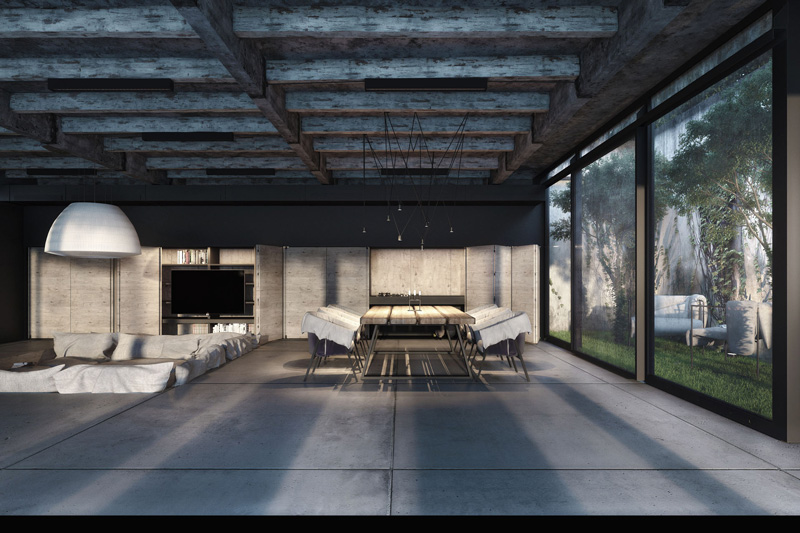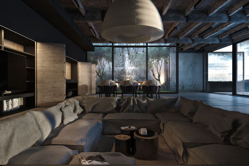 I recently stumbled upon the portfolio of Russian architect Igor Sirotov and was immediately taken with his designs. I can’t tell if these are computer generated or just exteme photoshopped but I don’t really care. This home is all about drama and open spaces and lots of concrete (a bit cold) and the coolest lounge pit in the living room (I may have a slight obsession with lounge pits). Many friends would be required to thoroughly enjoy this home, because it demands some serious partying.