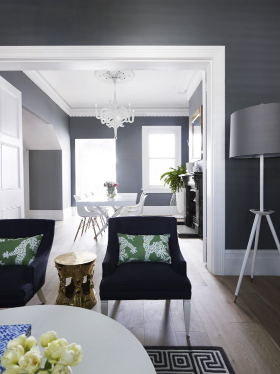 In a departure from his signature highly decorative Hollywood Regency/midcentury glamor style leading Australian interior designer Greg Natale has taken a inner city terrace, played with scale and colour, streamlined his rich multilayered interiors and delivered a home that is dramatic and stylish. Sultry grey is lifted by white. Furniture is carefully curated and oversize is not out of place in the play. In the new extension kitchen and family room are open plan and sleekly modern, the perfect counterfoil to the high drama of the rest of the house. A grey beauty indeed.