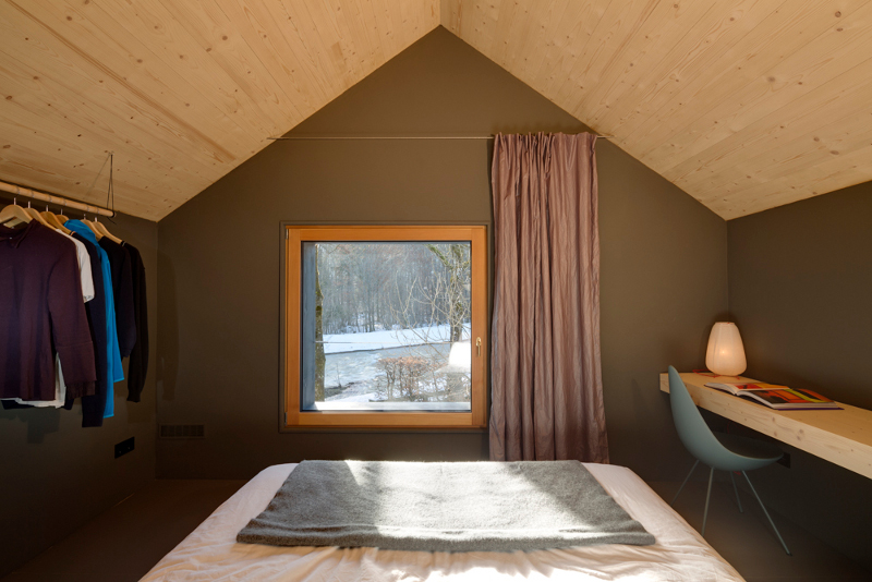 Only 4 meters wide this holiday house in the small town of Oberaudorf in Bavaria, Germany packs a lot of punch in its small footprint. Cantilevered balconies on either side allow for indoor/outdoor living while a series of levels rise through the 2 storey interior. By Christine Arnhard and Markus Eck of Munich-based architectural firm Arnhard und Eck not only is it their own getaway but you can rent it too.