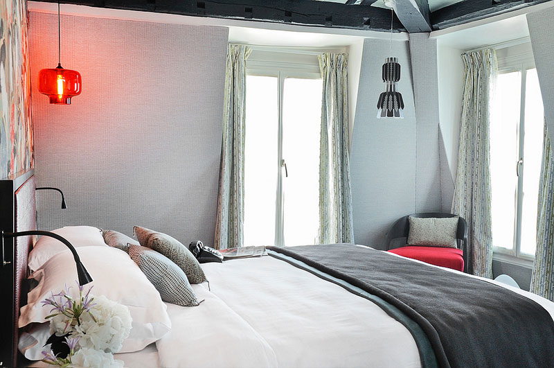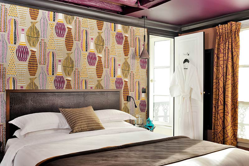 Yesterday Jo took you to Mykonos. Today I’ll be taking you to Paris, specifically to the Hôtel du Panthéon. It has recently been completely renovated and is now absolutely stunning, due in part to the fabulous decor by interior designer Valérie Manoïl. It’s modernized, bold (the wallpaper selections!!) yet classy and I would absolutely love to stay here. (Photos by Jerome d’Almeida)