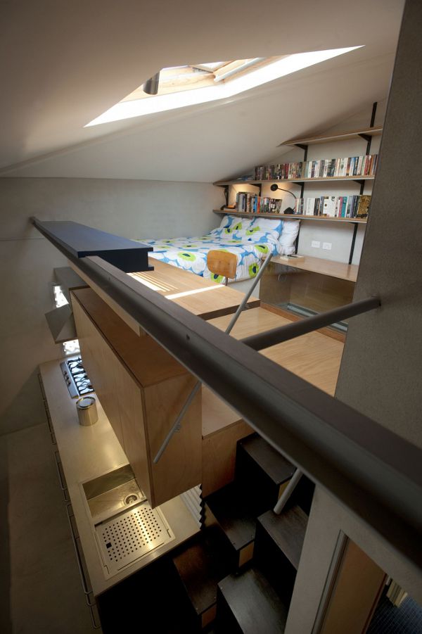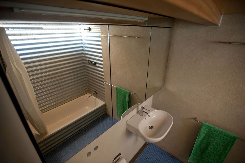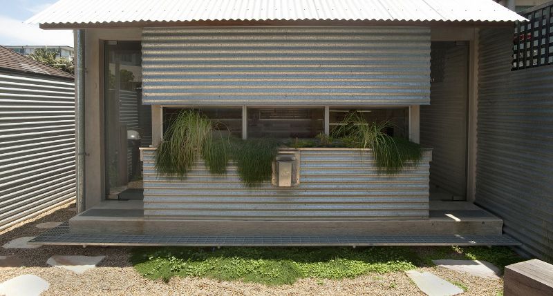 A modern take on the Australian corrugated shed vernacular this interior alteration to an existing 3 bedroom 1919 house provides open plan living, dining and kitchen with study mezzanine above while sheilding the rear of the house from the prying eyes of the residents of the large block of apartments behind. Tamarama Semi-Detached by David Langston-Jones.