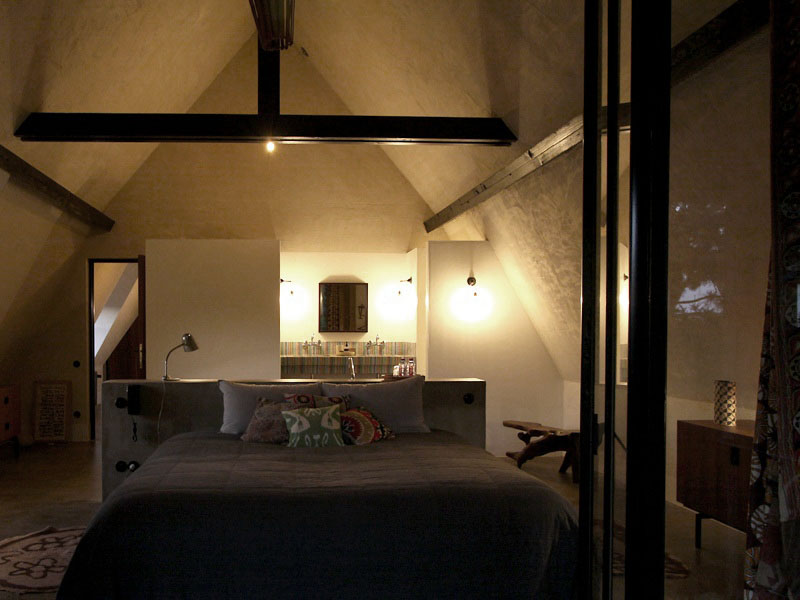 It really could not be more obvious that a guy’s guy lives here. I may be stereotyping but I’d wager a cat. It has everything a masculine pad could ever dream of – brick walls everywhere, steel beams, loftiness, reclaimed wood, a decent media centre, a just-big-enough kitchen to eat take out in….and it’s even got pets made out of conduit! Via The Village