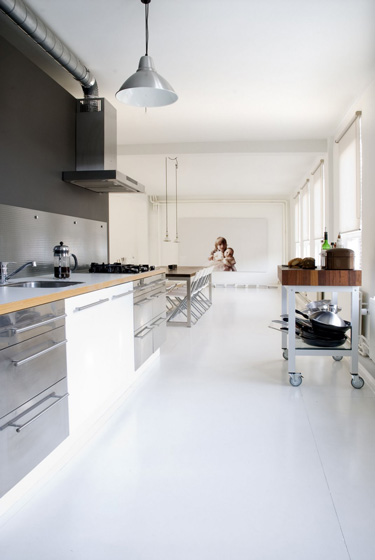Today was a bit of a quiet week so I thought I’d squeeze in another reader request since my list is rather lengthy. This one is from Lee: “Do you any inspiration for industrial looking kitchens, doing a kitchen remodel and like the not so clean put together look.” Industrial, not-so-put-together kitchens are my favourites – next to my existing Greentea kitchen that is 🙂 – so I was happy to devour my photo stash on the hunt for some of these types of kitchens. Good luck with your remodel Lee and I hope the following photos help! (P.S. Not that long ago I did a reader request on stainless kitchens which goes with the industrial theme of today’s post).