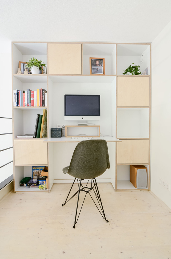 It is hard to believe this was once a school. This modern, bright and airy loft in Amsterdam is now home to a family of five. The teacher’s lounge became bedrooms and the classroom became the living space. The kitchen is fantastic! I especially love the wall of open storage over the sink cabinet section. Such a fun place to raise kids in. No worries about the floors getting scratched up (it’s concrete) or one of the kids hiding somewhere and wrecking havoc (their toys are stashed in the play area under the stairs). By Standard Studio.