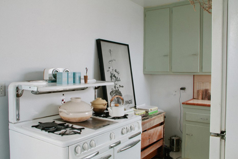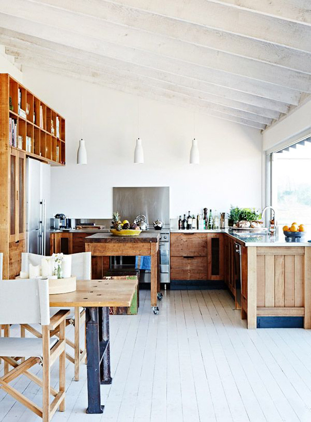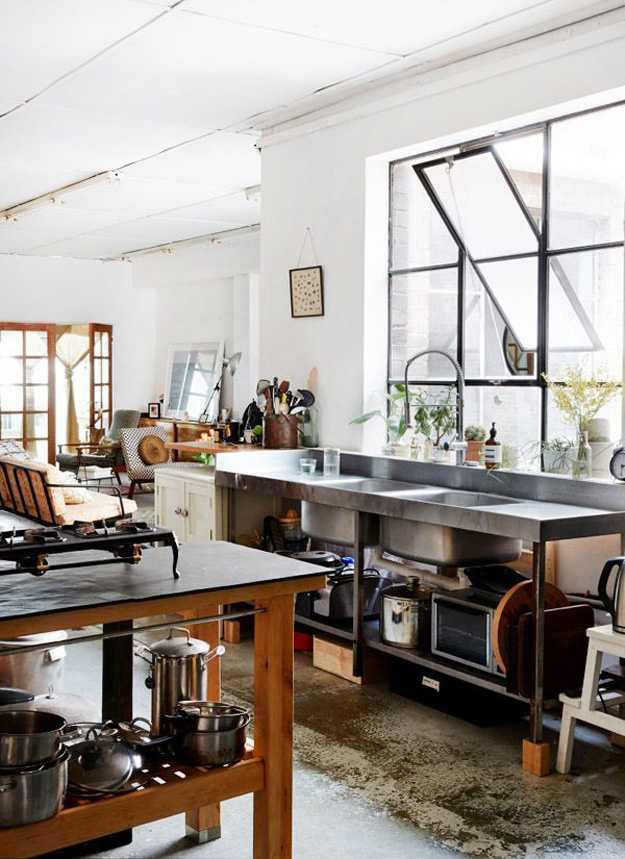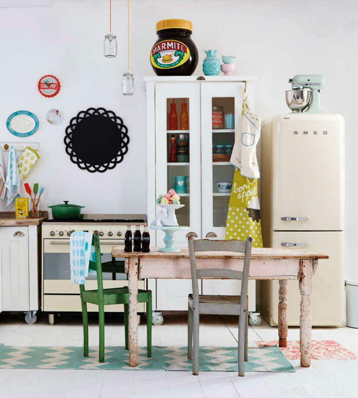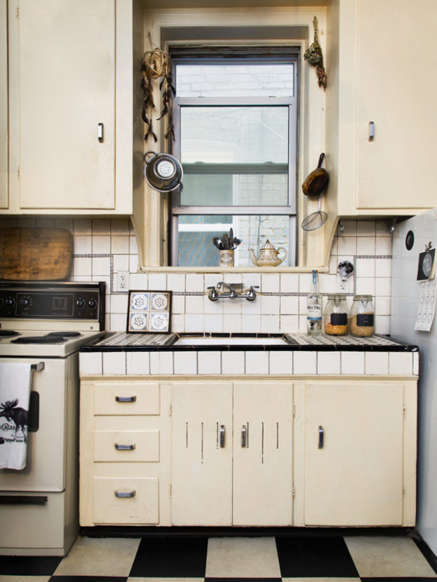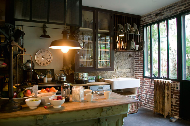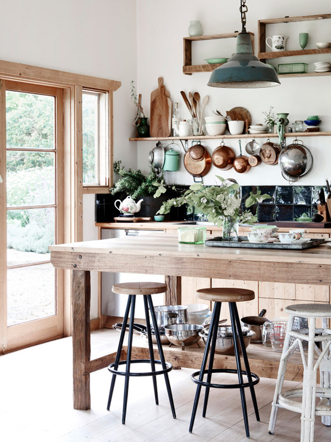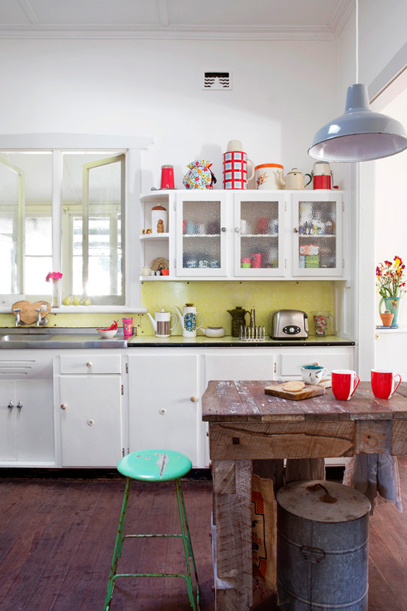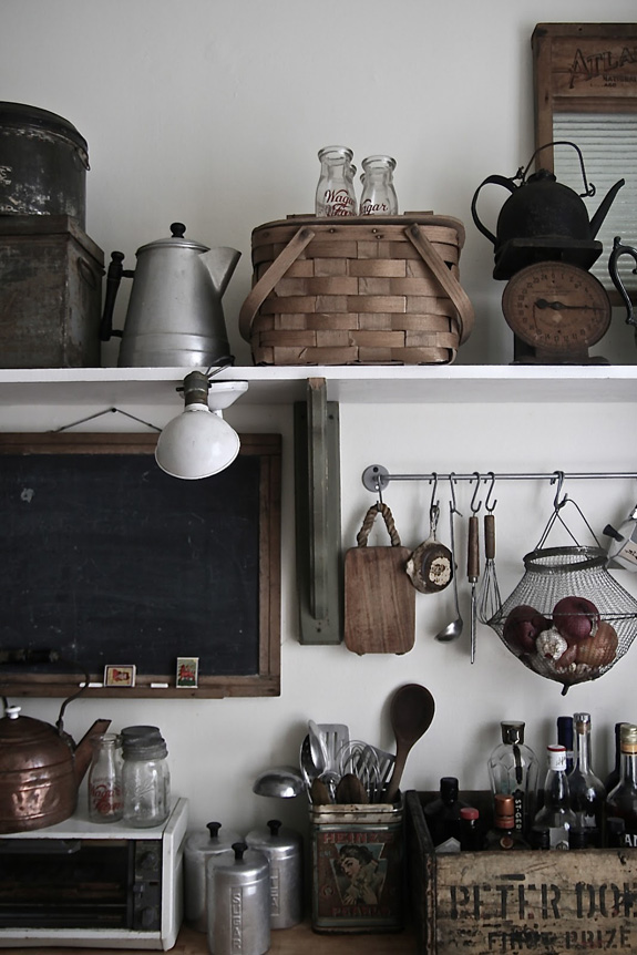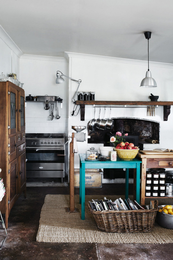 I love vintage kitchens. There is something so comforting and unpretentious about them, filled with character and they look even better with scratches in the butcher block, wine stains on the counters, and pots and pans hanging from any surface with a hook. I thought I would do a round-up of vintage kitchens (love the ones with industrial touches too) in the hopes of inspiring anyone who has a vintage kitchen to maybe reconsider updating it. Because you may regret it.