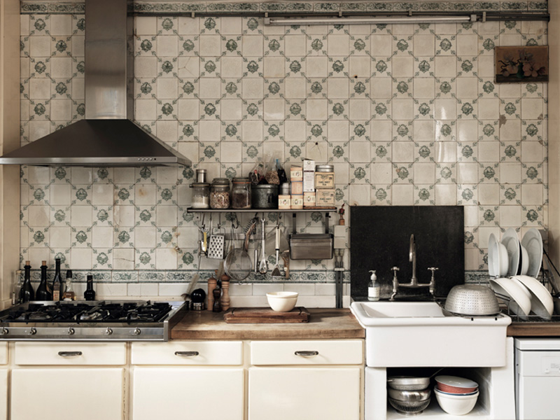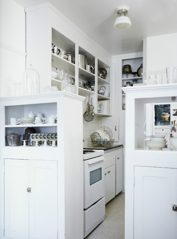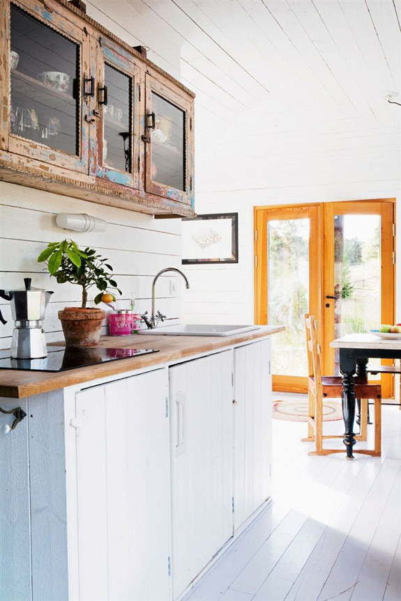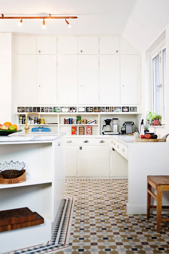 This kitchen in a 1920s apartment in Stockholm featured in Elle Decoration Sweden is absolutely gorgeous. It was totally renovated but they maintained the peeling and cracked ceiling, added some Ikea cabinetry mixed with vintage pieces, Carrera marble, tiled walls, funky lighting… The resulting space looks like it has been there since the 20’s. SWOON! (photos: Martin Löf)
