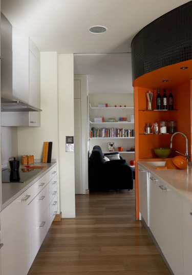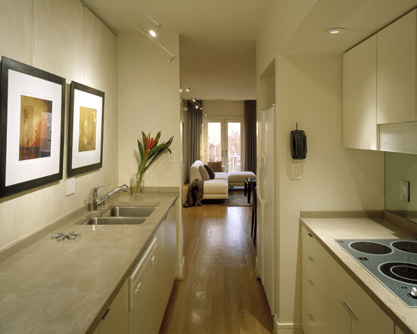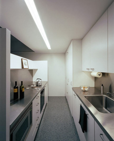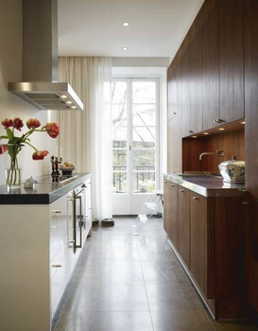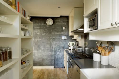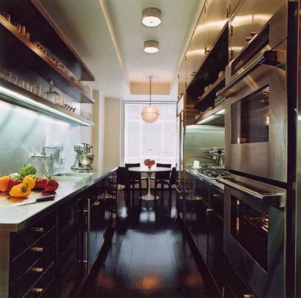 I figured it was about time for another reader request. This one comes from Marisa: “We bought a 1950’s house a few years ago and are (finally) ready to start planning our kitchen renovation. It’s terrible! Three layers of stick-on tiles, fake wood countertops, “custom” lighting. However, most inspiration kitchens are open plan, while ours is galley – and no potential to be otherwise because every wall in this house is cement block. Weird! Would you be willing to find some galley kitchen inspiration photos?” Simple enough request. Here ya go Marisa! (OMG aren’t cement walls a b*tch?!)