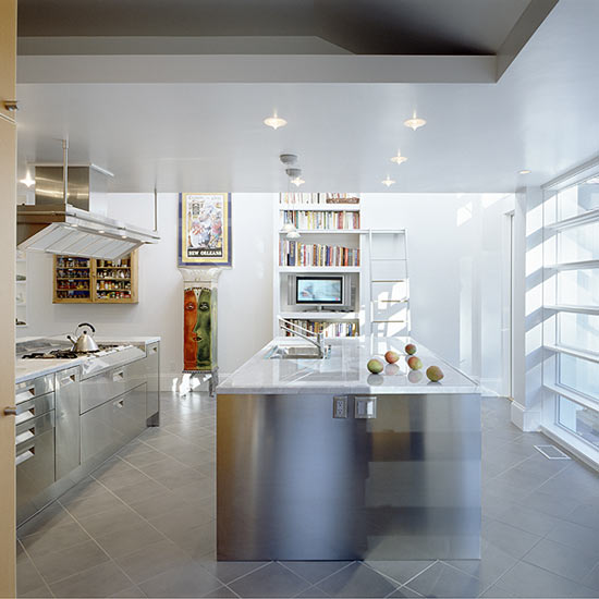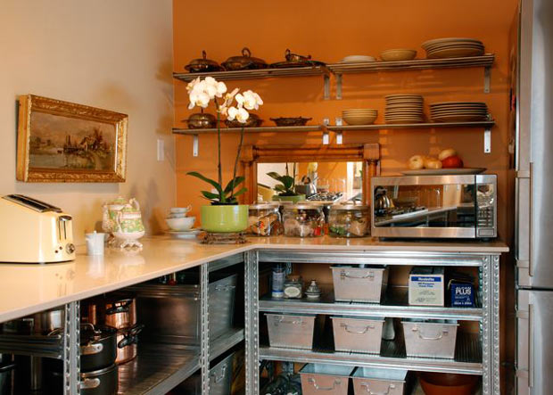 This request comes from Joanne: “I am looking to renovate soon, and there is a stainless steel kitchen with open shelving I love (Moris Moreno). Do you have more photos of kitchens like these?”