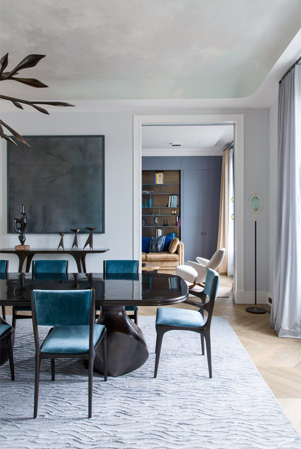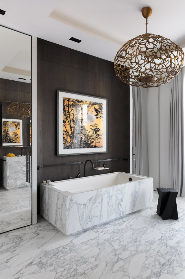 I regret not titling this post “Lighting porn” as these spaces by French designer Damien Langlois-Meurinne are outfitted with some of the most spectacular lights I have ever seen. And some of them are designed by Damien himself. These rooms are glamorous and luxe, but the lighting takes them to another level. They are pieces of art, making a statement.