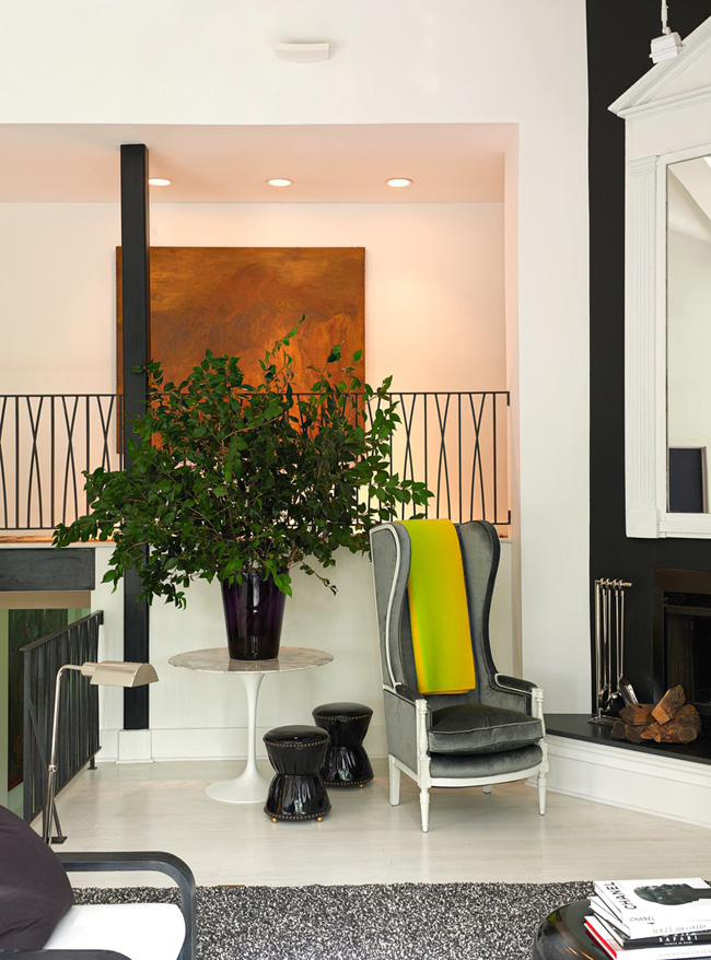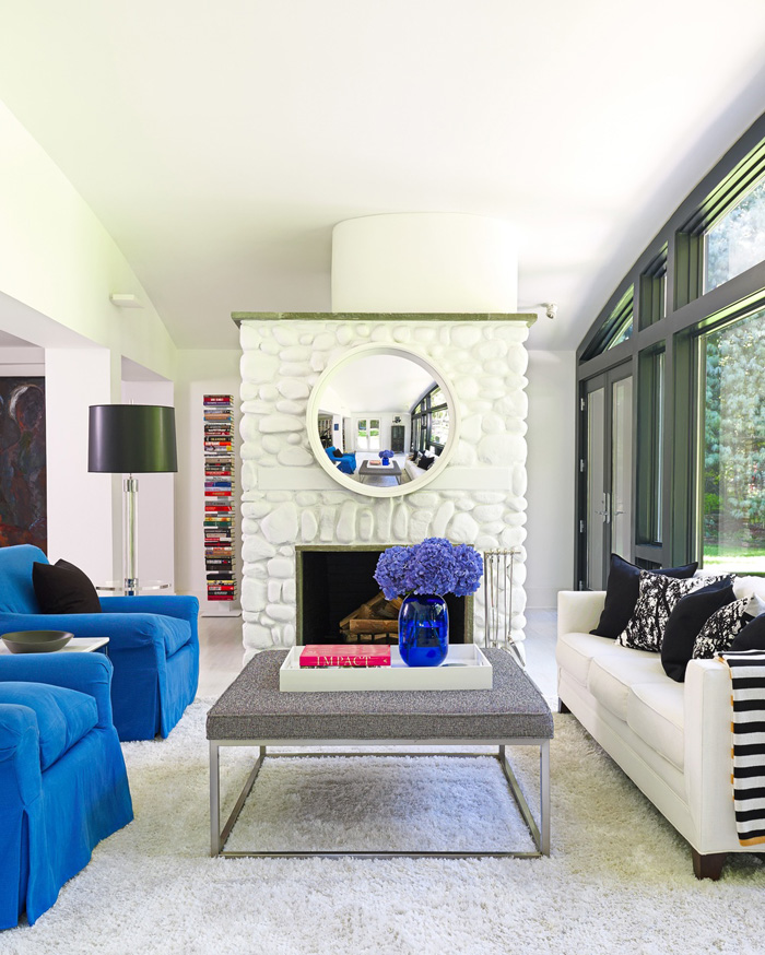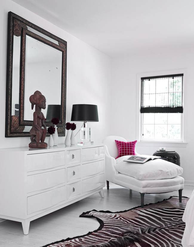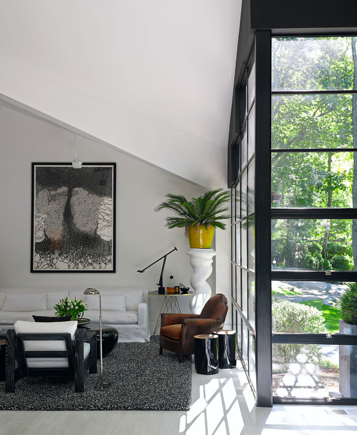 A beautiful modern home in the middle of a forest + black and white + sleek furnishings + dashes of colour + hollywood regency vibe = this glamourous residence by designer Patrick Mele.