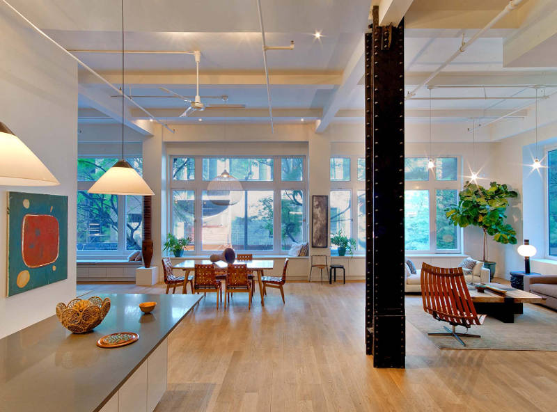 A little loft love for your weekend delectation. The light (that bank of windows makes me swoon), the open plan space, the mid century pieces, just enough industrial and colour splashed about. Favorite spot? The TV room/den. West 15th Street Loft by New York City based Interior Design firm 2Micheals.