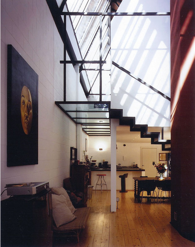 I know I have often said “this is my dream loft!” but in all seriousness, THIS IS MY DREAM LOFT! The exposed brick and beams, and HOLY SMOKES WILL YOU LOOK AT THAT MEZZANINE! With direct access to the roof-top terrace and features an interior courtyard with a retractable glass roof. I die. By Andrew Franz Architect.