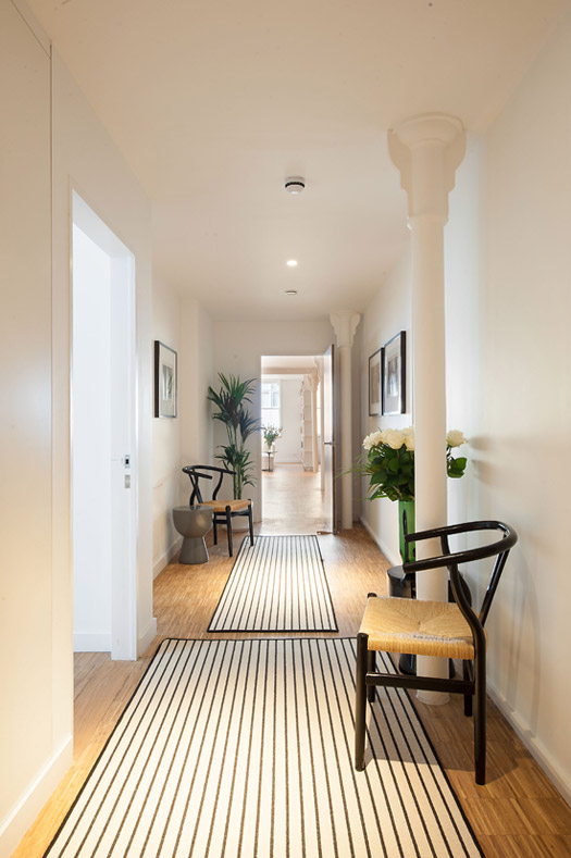 This property is loft living at its finest. I have and always will adore loft spaces. The ability to have all that space, and those huge windows and high ceilings, to be able to cram it with furniture or keep it at sparse as you wish…the possibilities are endless. This loft is to die for. It’s 2700 sq ft in a warehouse-style building located in London, with 3 bedrooms, each with it’s own bathroom. It’s been totally renovated by the current owner, and one of my favourite features is the flooring continuing along the wall in the kitchen and in the media area. I’d just throw in some industrial touches like some funky light fixtures and maybe some metal carts/cabinets and I would settle in quite nicely. 🙂 (More details here, and the agent’s page here)