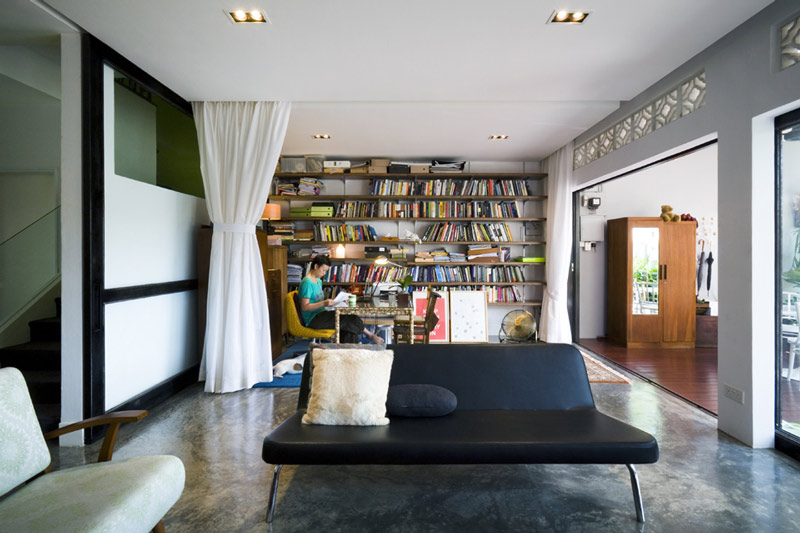 Here is another project of theirs that caught my eye. Serving as the home for an architectural academic, her family and an enormous collection of books, meant that the study had to come first. The house was built in the late 1960s and we wanted to keep the original feel of those terrace houses with its generous balconies and bedrooms. The study was given pride of place at the front of the house on the ground floor, facing a new walled garden, and the rest of the house fell naturally into place.