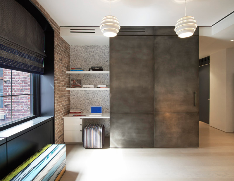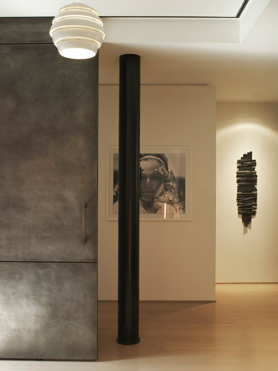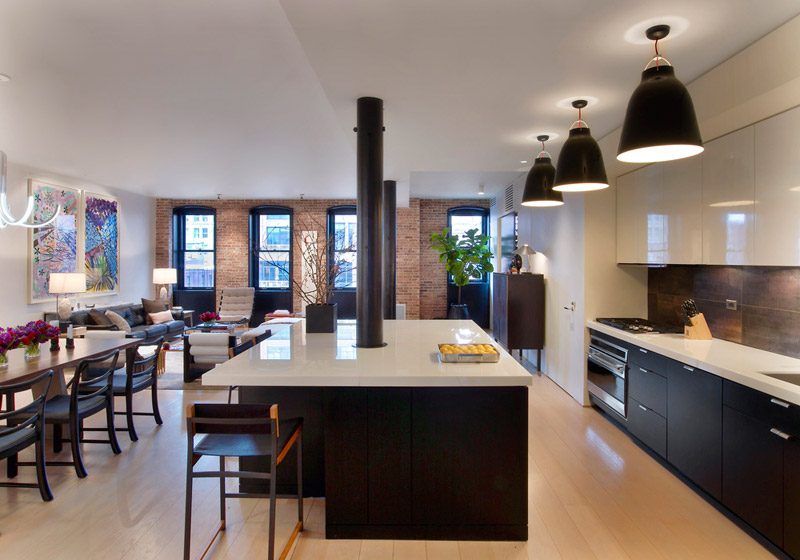 Check out this fabulous loft by Dirk Denison Architects in collaboration with Sara Story Design. It’s just the right amount of modern design, sophistication and comfort. The black steel (?) beams and black framed windows are a cool, graphic touch, and I love the sleek integrated look to the kitchen cabinetry. Yep, I could certainly live here.
