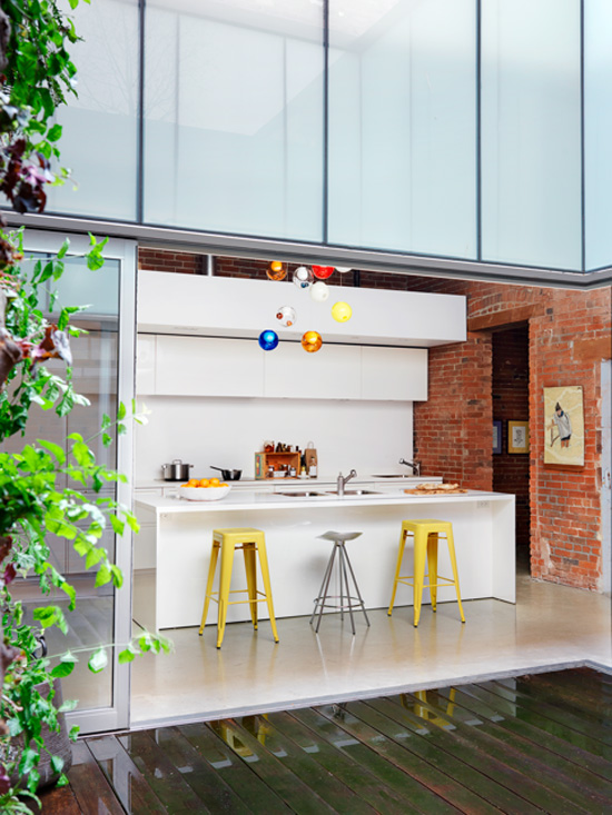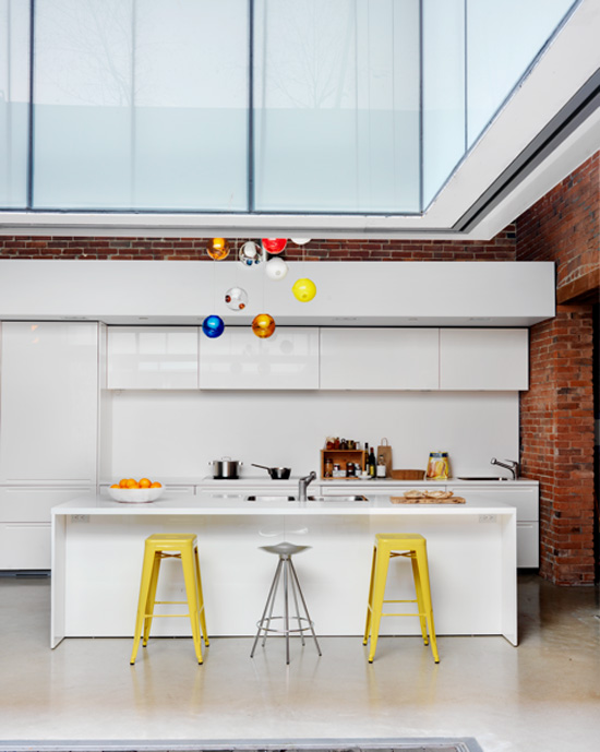 I have been a huge fan of lofts for as long as I can remember (still dream about owning one someday) and I got my hands on some photos of a fabulous Vancouver loft designed by architect Omer Arbel (Jo featured an amazing home of his design here). Here are some details from Omer: The project consisted of a seismic upgrade and restoration of a heritage building in Vancouver’s historic gastown district, and a loft interior design project. The loft is organized around a new courtyard open to above, inserted into the heritage fabric of the building, allowing light into the centre of the very deep plan. All other interior elements are rendered crisply using precisely machined elements, conceived to stand in strong contract to the rough heritage fabric of the existing shell. The massive amounts of exposed brick, the beamed cielings, concrete floors – it is breathtaking, and yet not at all cold. W O W.