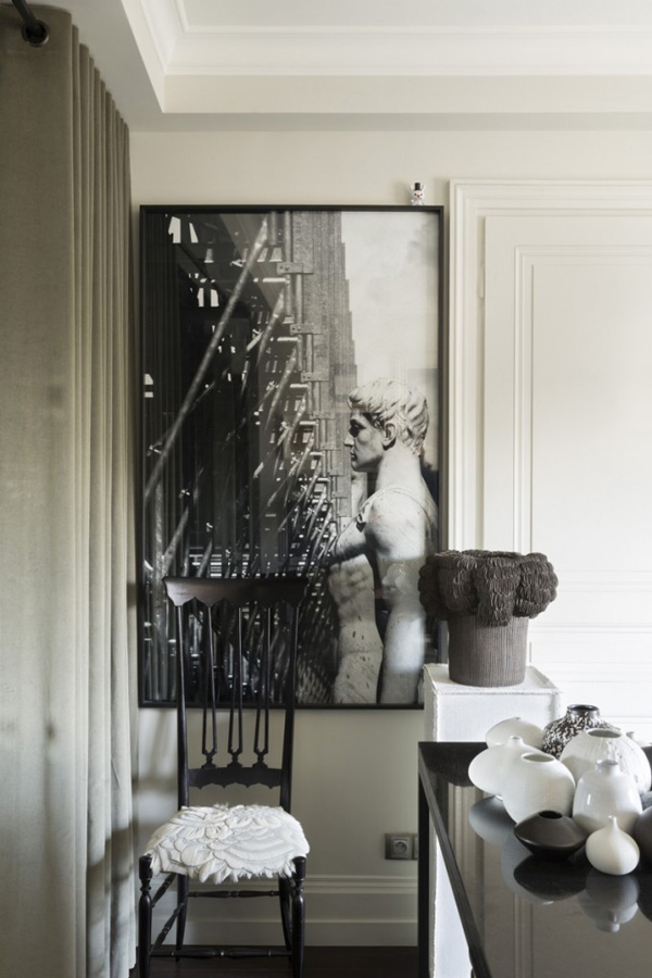An amazing collection of artifacts and sculpture, an oh so chic apartment, a stunning Eiffel Tower view and not one but eight de rigueur Chandigarh Chairs by Pierre Jeanneret. Serious case of envy on my part. I wish I was the collector who lives in this stylish abode. Appartement Rivoli by CSLB Studio.