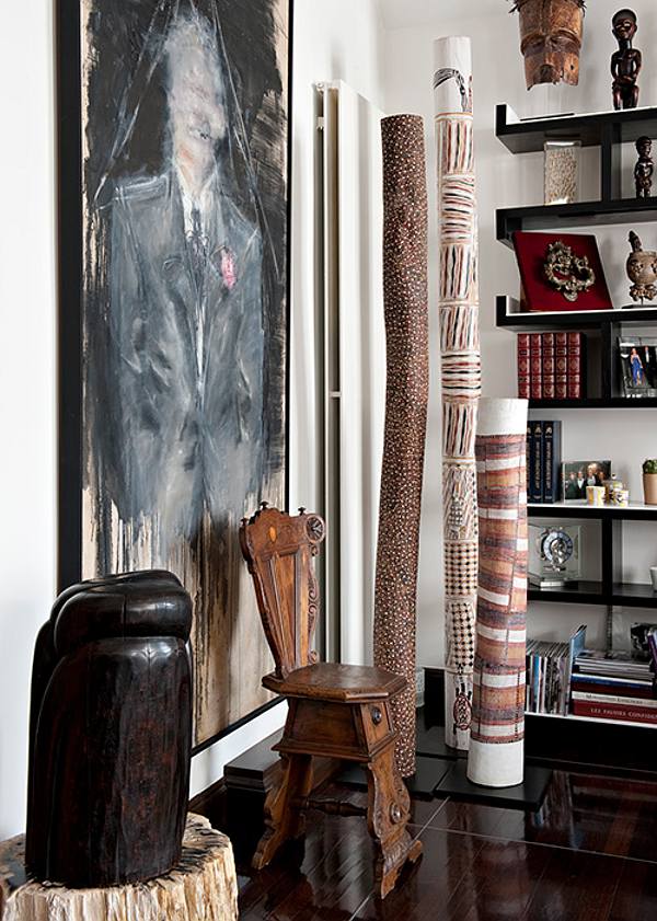 Yes my love affair continues. Just one more apartment by Emma Donnersberg Interiors. Oh so chic, so elegant with a wonderful collection of global artifacts including three Tiwi Island burial poles. Such an amazing collection my eyes can’t settle. They are flitting from treasure to teasure.