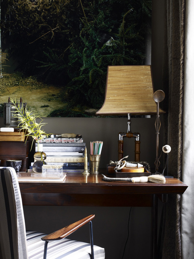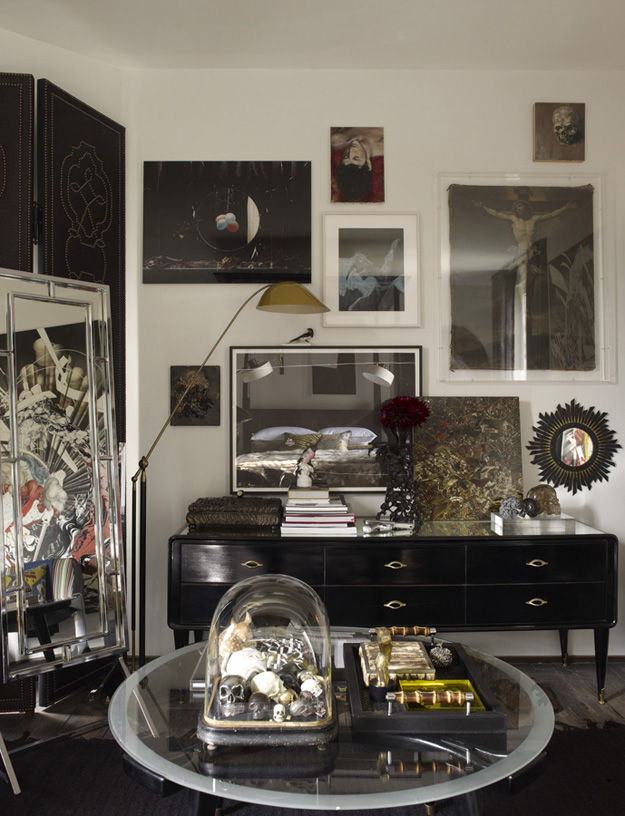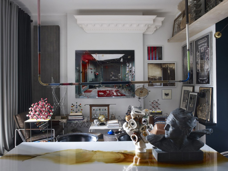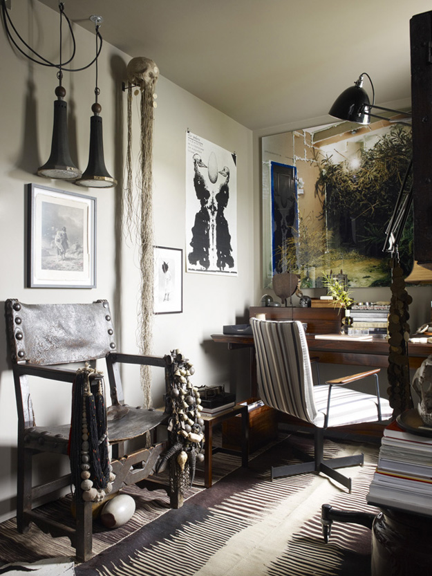 I featured a couple of projects by London-based interior designer Hubert Zandberg recently….but I have not yet shared his home with you. It is like a museum, a laboratory of wunderkammer. I hope he has a housekeeper because I cannot fathom having to dust all of the things. I could spend hours in his home inspecting each and every artifact. And then I would stuff a few things in my purse because he surely would not notice. 😉