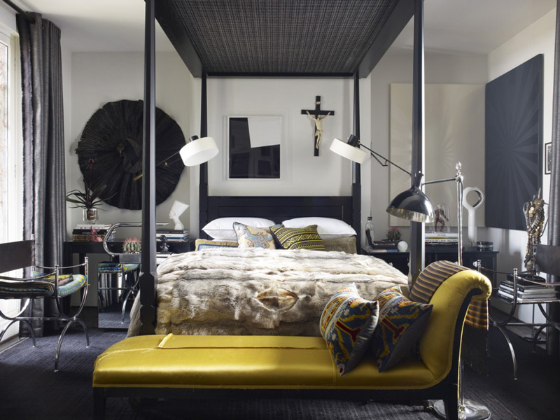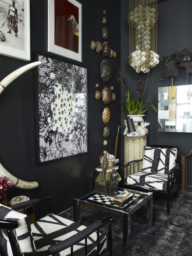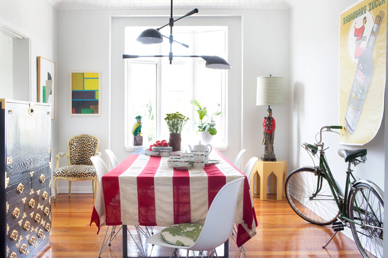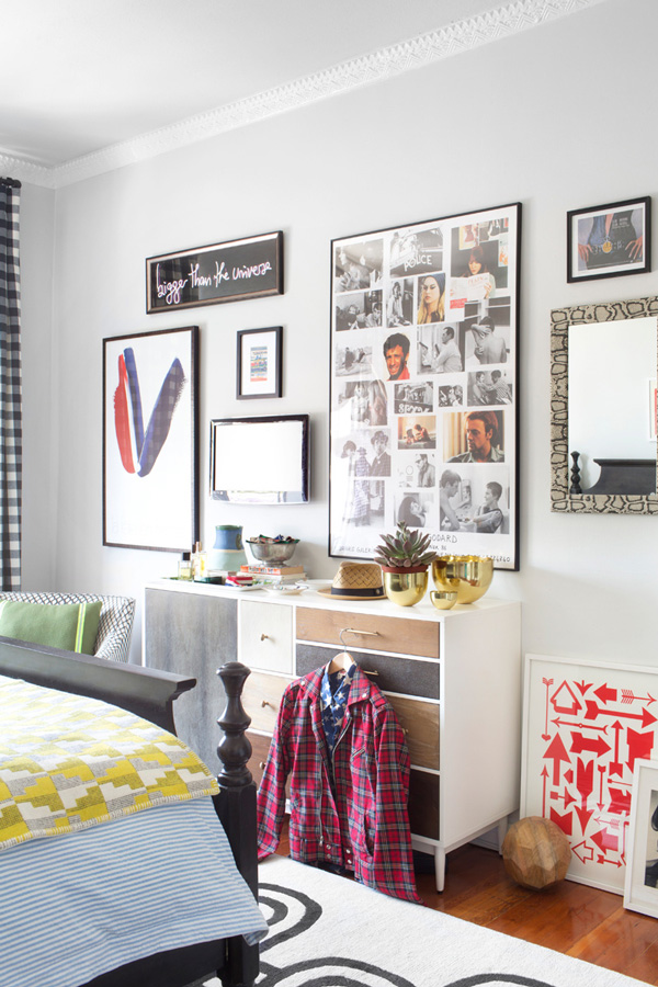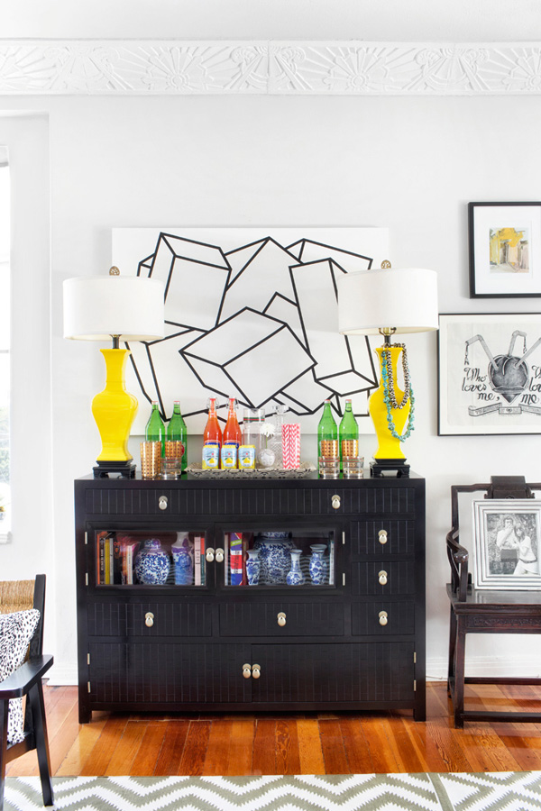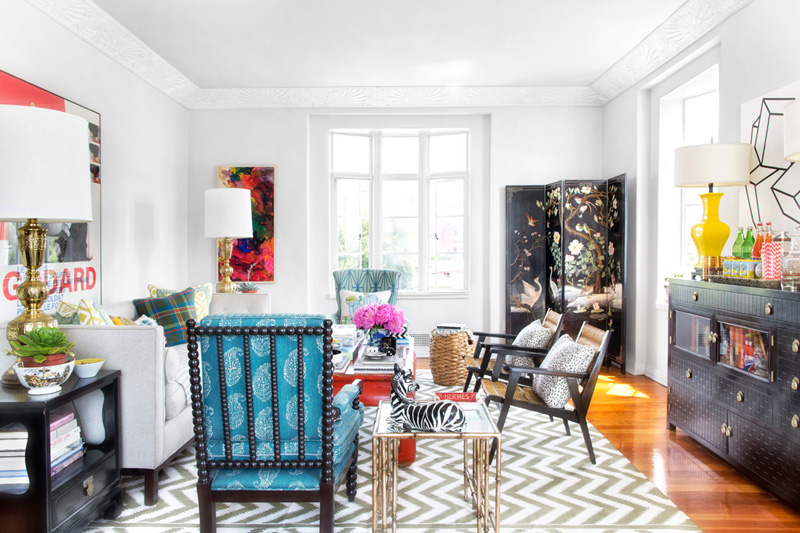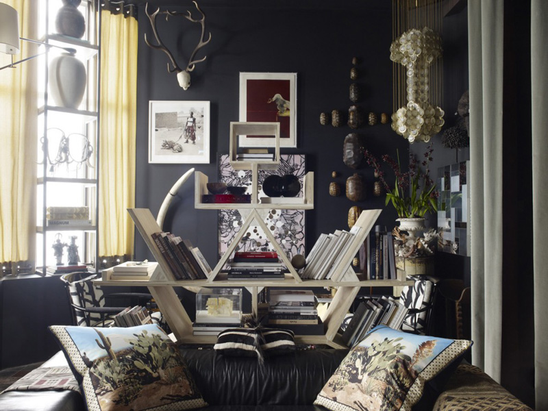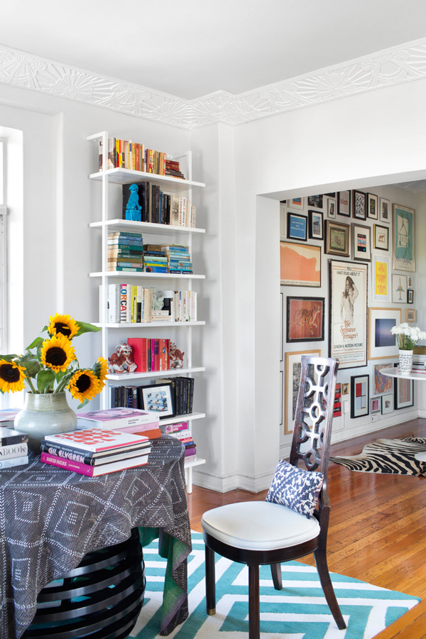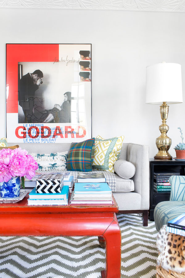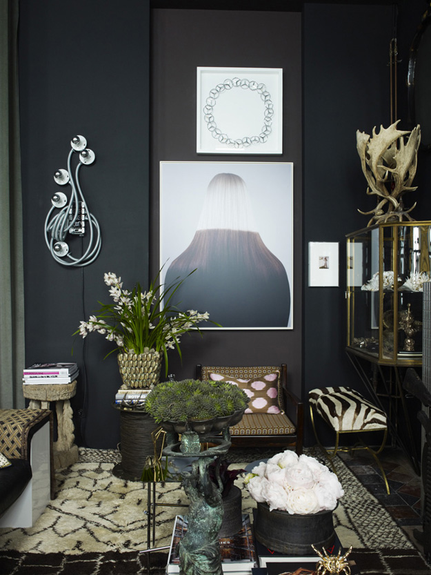 Max Humphrey of Burnham Design went all out with a totally eclectic blend of furnishings, colours and patterns in his West Hollywood apartment. Known for combining modern and traditional with a little jolt of the unorthodox, this space (with glorious original moldings) is an energetic, whimsical home that is full of life. And wow – this man loves artwork! (Via Architectural Digest Spain, Photos: Sarah Dorio)