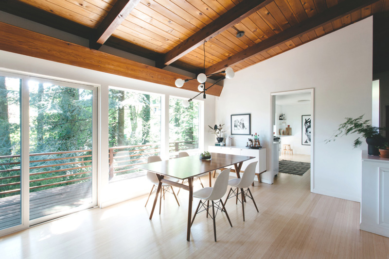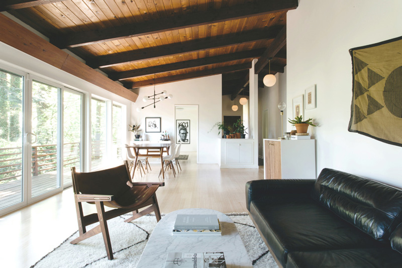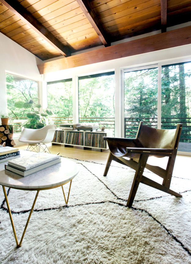 I have been a fan of Courtney Nye‘s designs since featuring some bits of projects here and this kid’s playroom. This mid-century home is a dream with tons of windows letting in all kinds of natural light (If this were my home I would have an obscene amount of plants) and the timber ceiling that feels right at home while living amidst the trees. The mid-century modern vibe of the decor suits this home perfectly.