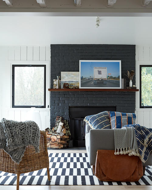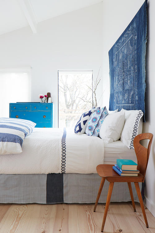 Modern farmhouse with a touch of mid century and boho. It’s a bold, fun mix and match, stylish and totally liveable. Love the cheerful shout out of the front door and that beautiful Hmong textile bedhead. Sonoma Farmhouse by Dehn Bloom.