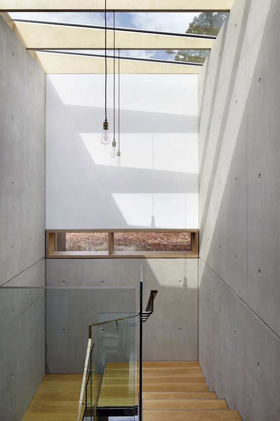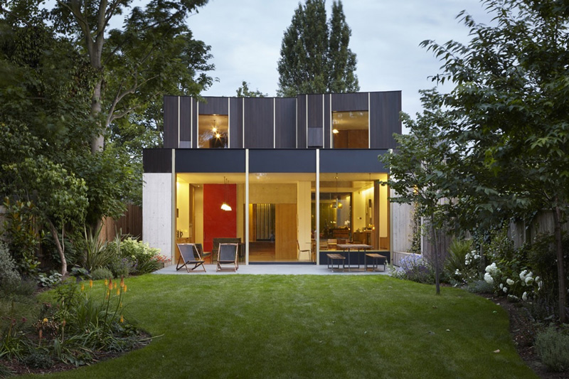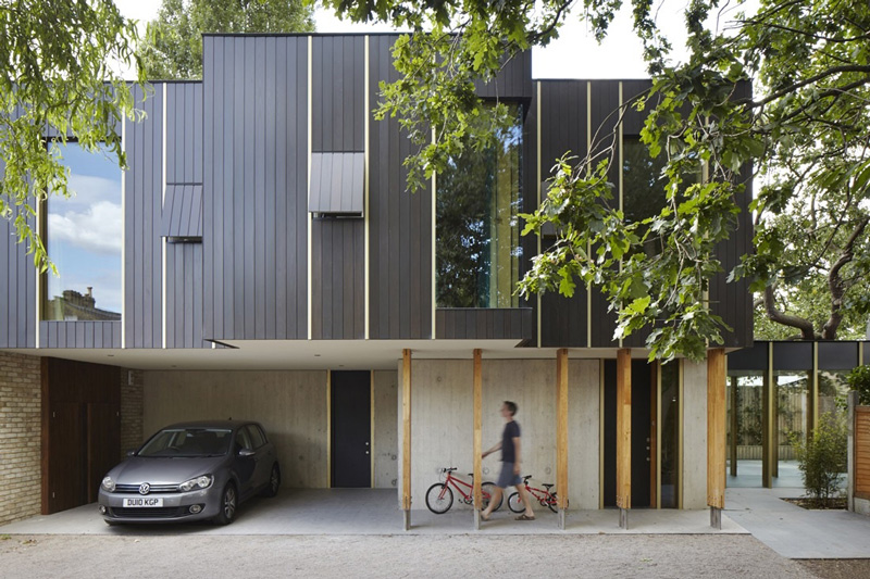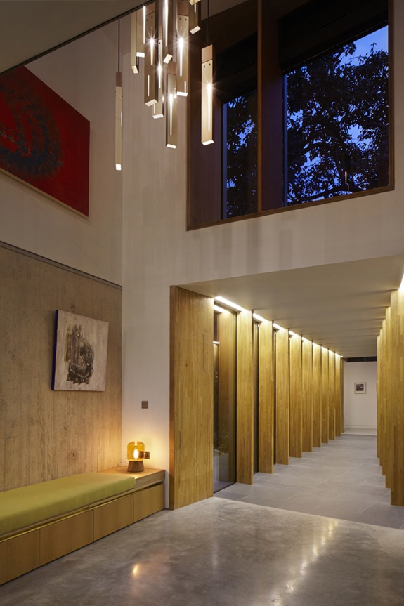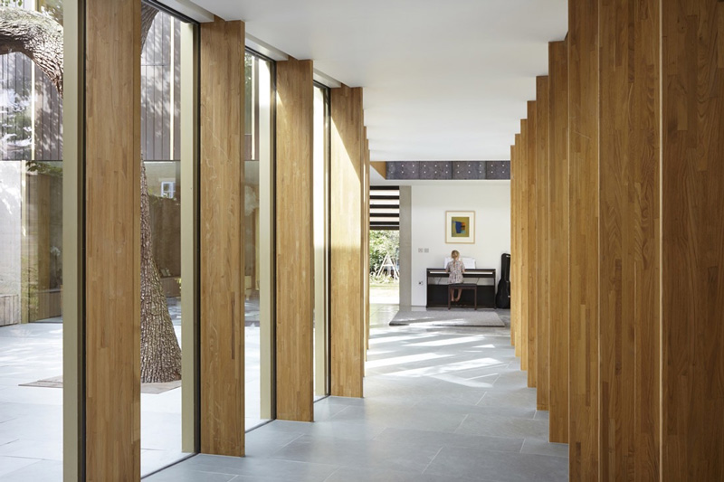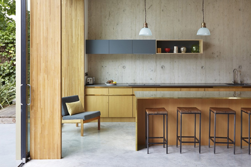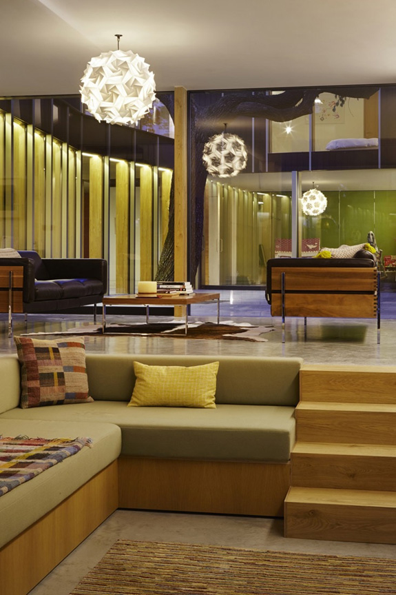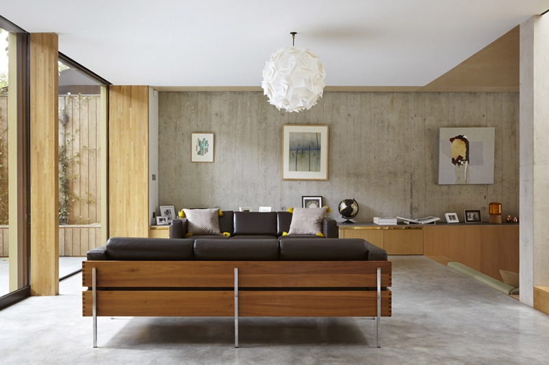 Mid-century modern architecture always makes my design juices flow and this home is doing just that. A location home available via jj Locations, it is so open flows beautifully and THOSE WINDOWS! The decor could be SO much better so I am sitting here re-decorating it over and over in my head. Built by the architecture company Edgley Design, Pear Tree House was shortlisted for the Stephen Lawrence prize and awarded a RIBA London Award in 2015. The house has been built around a 100 year old pear tree, which was once part of a Victorian fruit orchard, creating an internal courtyard bringing light and air to the centre of the building. The house is long and thin, and the layout is arranged around the changing light of the day with the lowered snug in the centre of the building forming cosy retreat with views out into the garden. The building was designed to blend into its wooded back land context as far as possible and views through the building are defined by slender vertical elements which echo the experience of looking through trees. The ground floor walls are cast in concrete with vertical timber and contrast the polished concrete floor creating abstracted reflections. The house features crafted joinery made from oak veneered ply with brass detailing. Two handmade chandeliers, hang in the double height void spaces at either end of the glass link. The smooth ply finish staircases create dramatic, naturally lit spaces from the roof lights above.