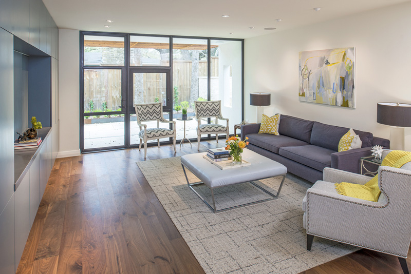 Texas-based interior designer Christen Ales wanted to share a couple of her projects with us. The one above is so fun – mid century modern with lots of colour accents in what is pretty much my dream home. Below is more contemporary but equally fabulous with shades of grey and blue. Soothing and classic, and OMG WILL YOU LOOK AT THOSE WINDOWS!