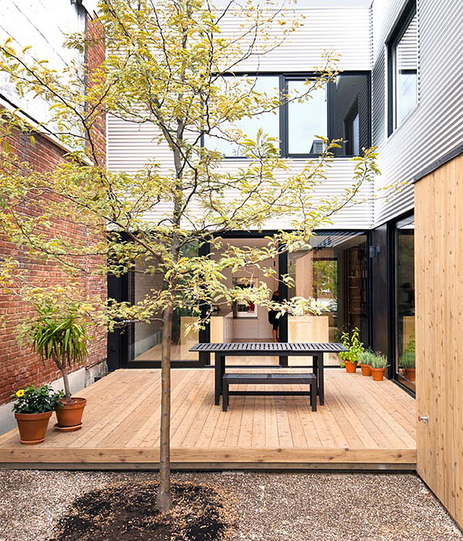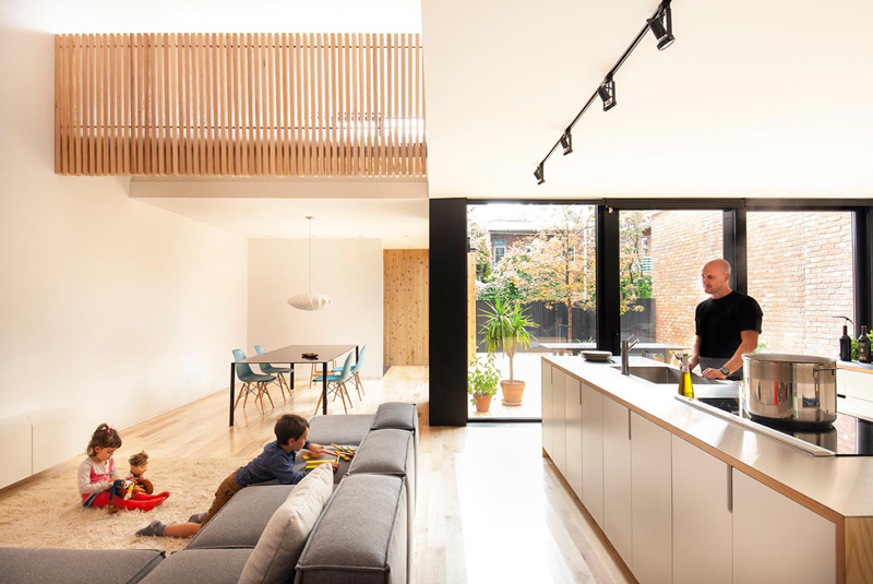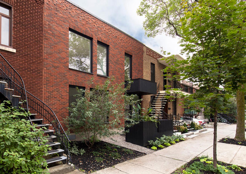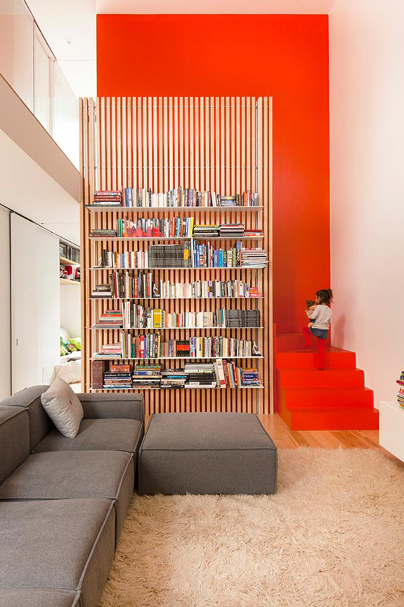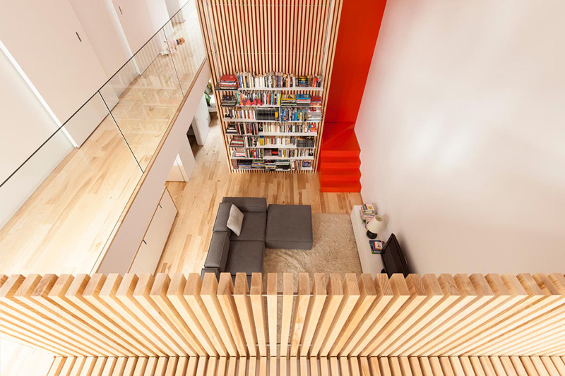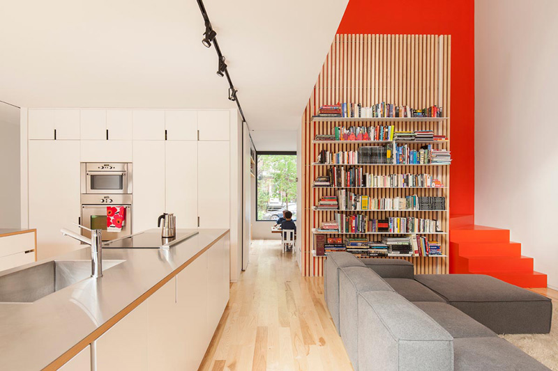 Montreal architecture firm la SHED continues to make magic happen and this renovation is indeed magical. They transformed a typical Quebec duplex into a single family home that is modern, bright, spacious and a great home to raise a family in. Light woods, a simple and open kitchen layout, double height ceiling, a courtyard and accents of red together make this really special. (I featured their work last year too).