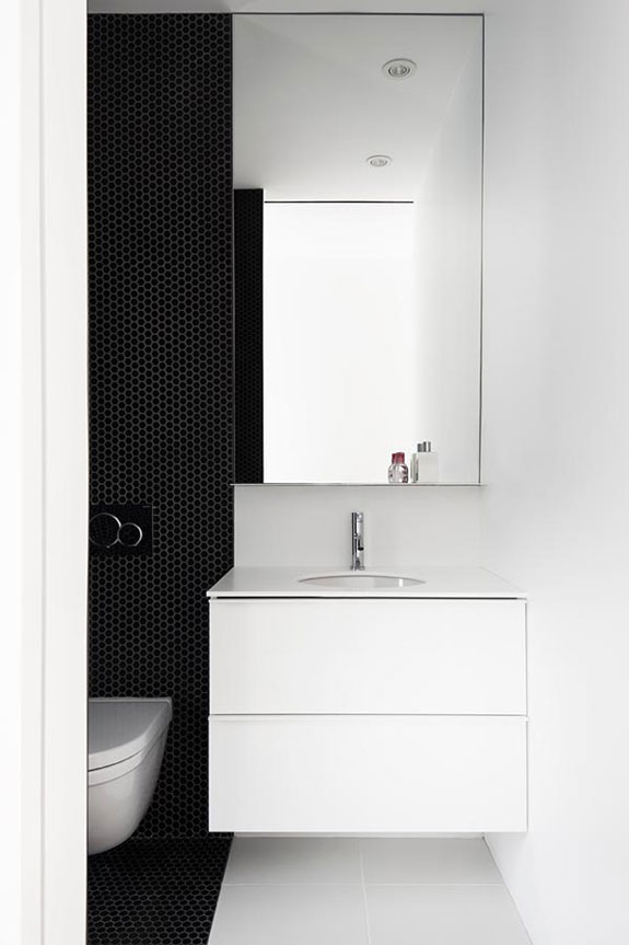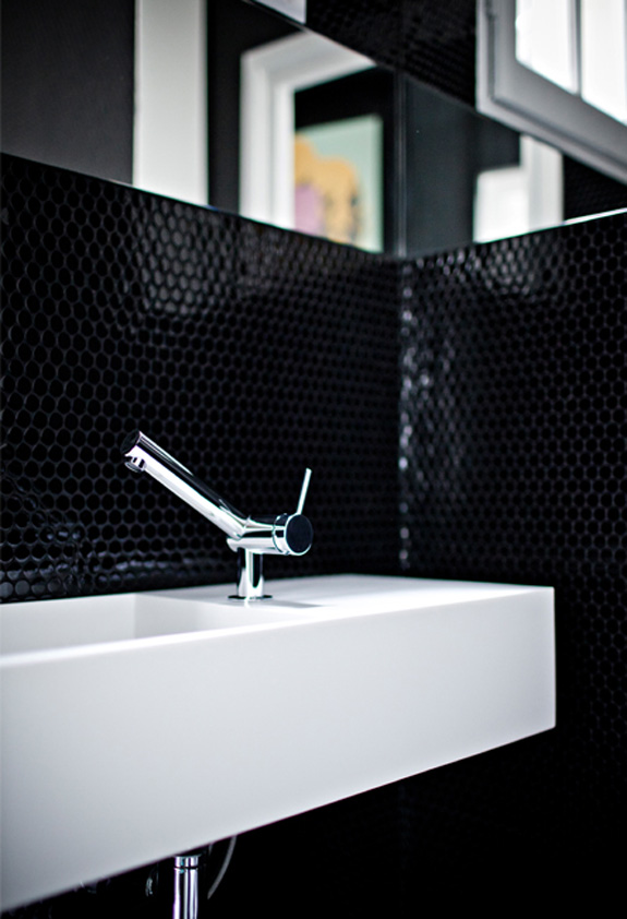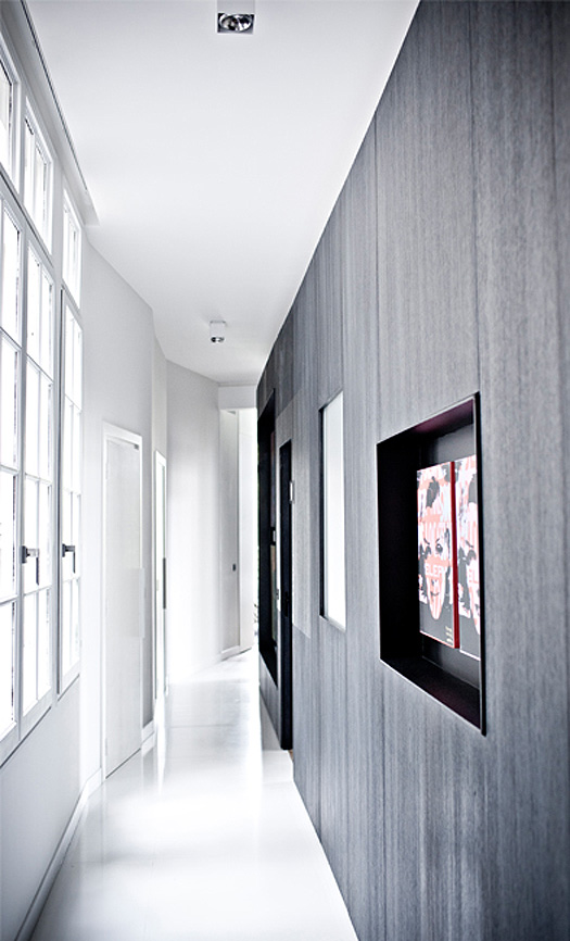 Step inside the unassuming facade of this 1950s warehouse and you’ll find a minimalist open plan home. Hints of the building’s industrial past remain but as a shell that contains this super slick modern space. Seamless Corian benches, stainless steel, strip lighting and painted concrete play against a mix of contemporary and mid century furniture. I would, however be more at ease with this house if they would just move the shaving mirror away from the ethanol heater. Ouch! Is it a clue that the owner is hot stuff? Le 205 in Mile-Ex district of Montreal by Atelier Moderno.