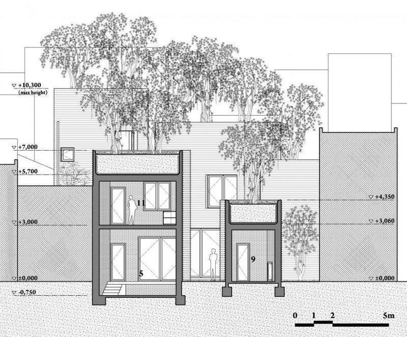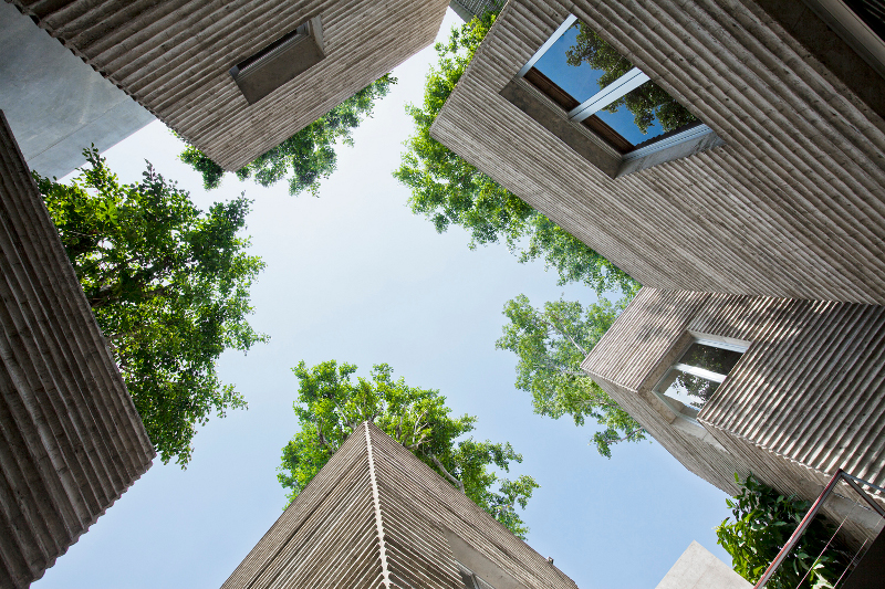 Mystical, magical, green. A house for its human occupants and a house for the trees. More importantly a house that gives to the city as well. The design for the award winning House for Trees in Ho Chi Minh City, Vietnam aims to address the overwhelming lack of vegetation in this urban centre as well as providing a connection to nature and a means to alleviate flash flooding from storm water run off. Each building is a giant planter box. Monolithic at ground level, ethereal above. By Vo Trong Nghia Architects.