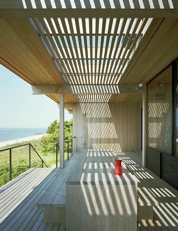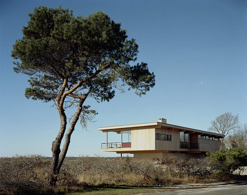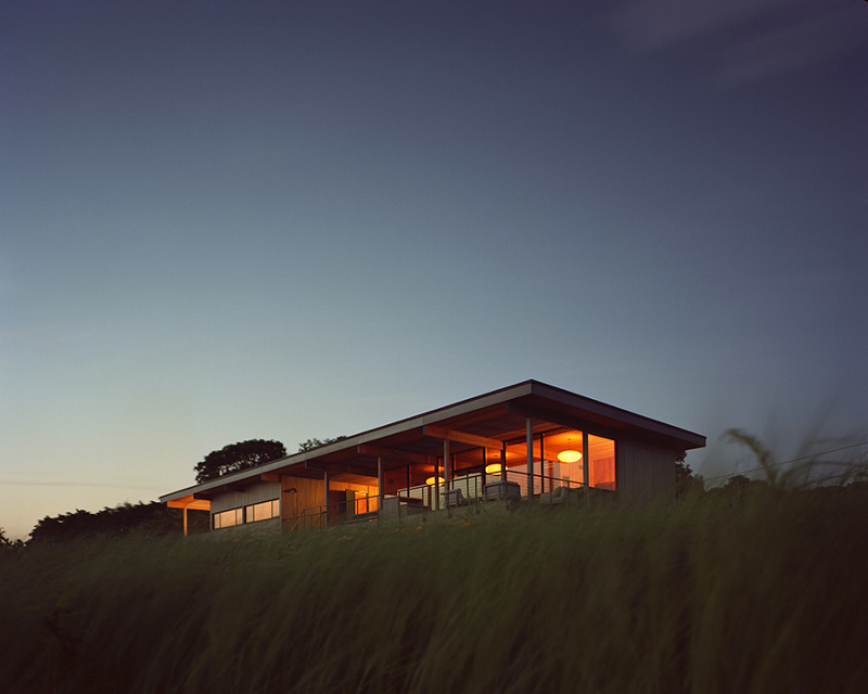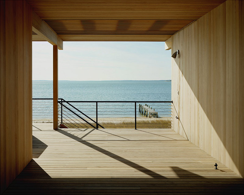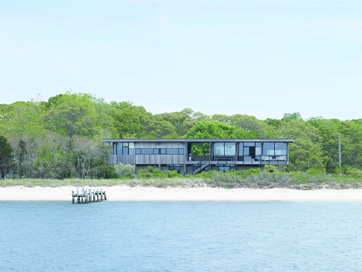 Raised above the dunes to take advantage of the view, the breezes and the lingering sunsets is a wooden box of a house. Honest in its construction. Thoughtful in its materials. Beautiful in its simplicity. Shelter Island house by Tamarkin Co.