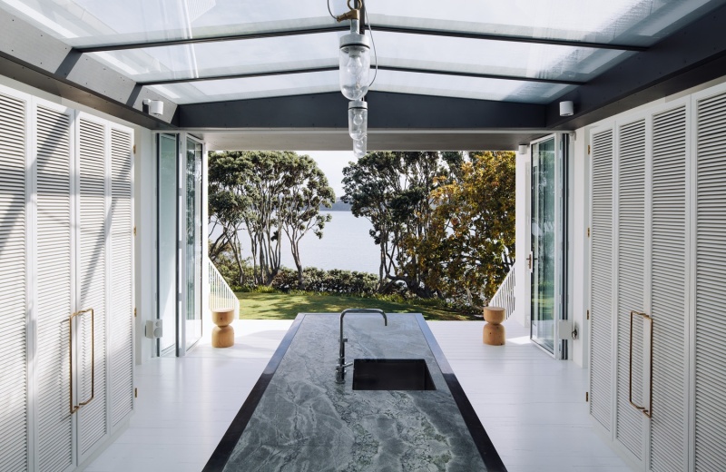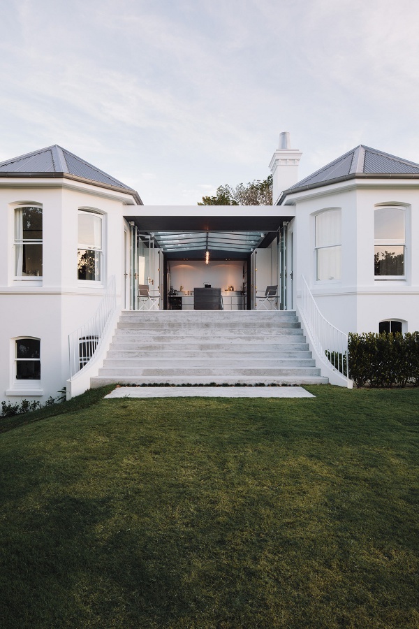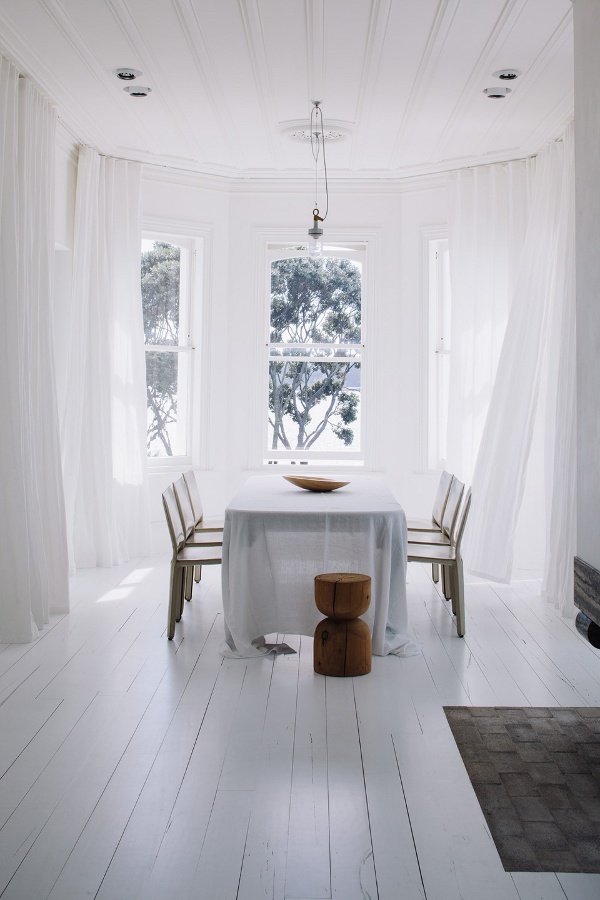 Harbour Edge House c.1910 reworked and extended by Fearon Hay Architects. An ethereal beauty. White floors, white walls, floating white drapes stirred by the breeze from the water beyond. Simplified and sensual. It’s love at first sight for me.