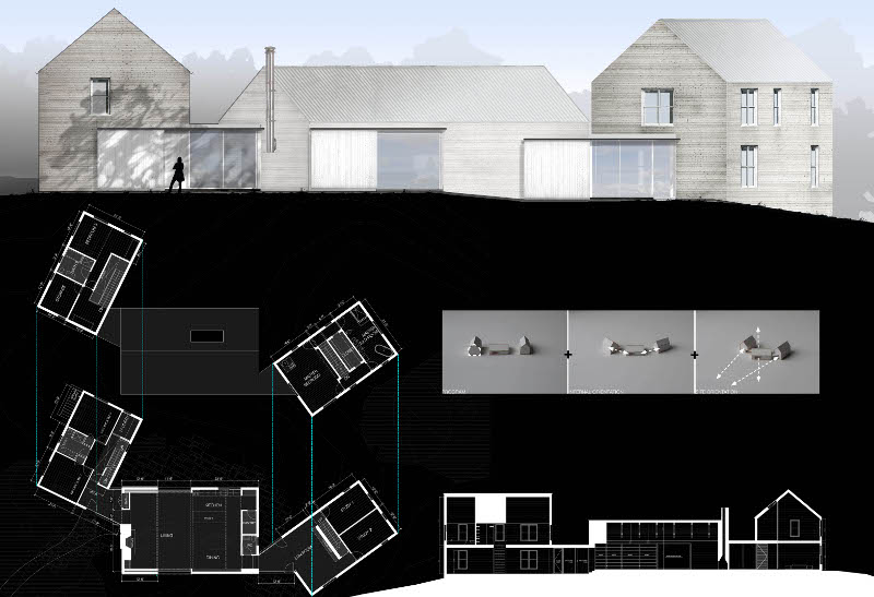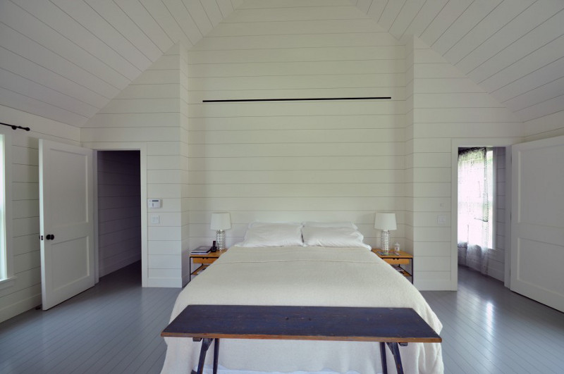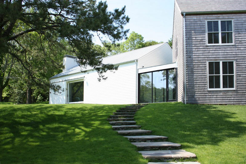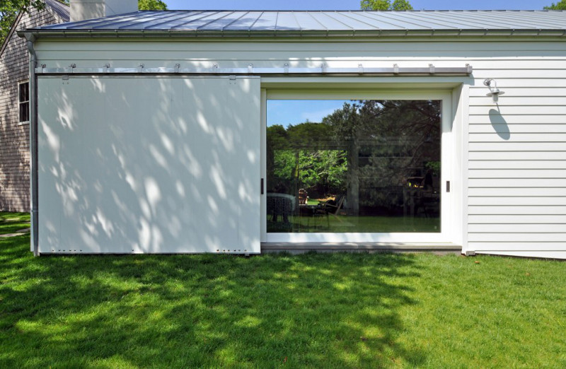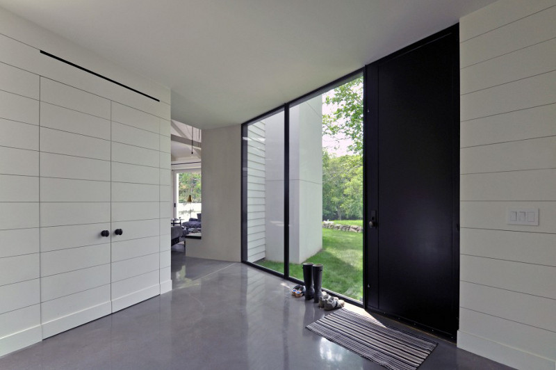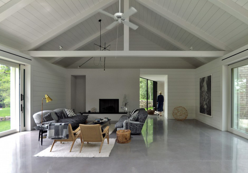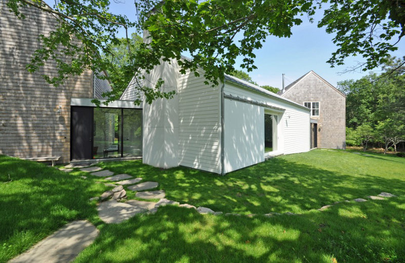 In a wood in Amagansett, Long Island there is a coming together of architect and client, of the rural building traditions of Long Island and Finnish Design. Three discreet buildings bound together by glass passages. Shingle and siding, rural and industrial, communal and private, view and personal space, polished concrete and painted wood. A marriage of man made and nature, of a building and a home. A perfect marriage. Amagansett House by Bagchee Architects.
