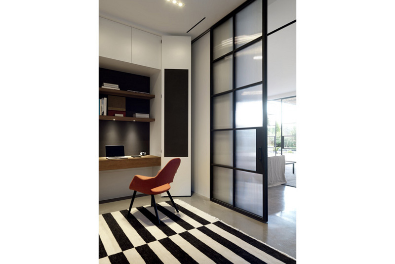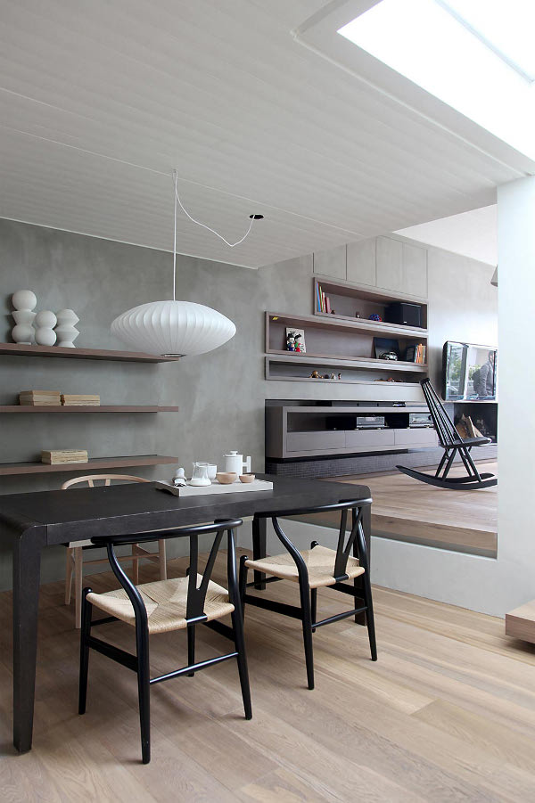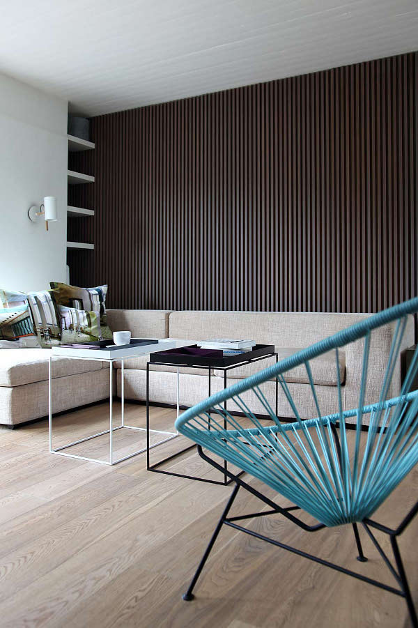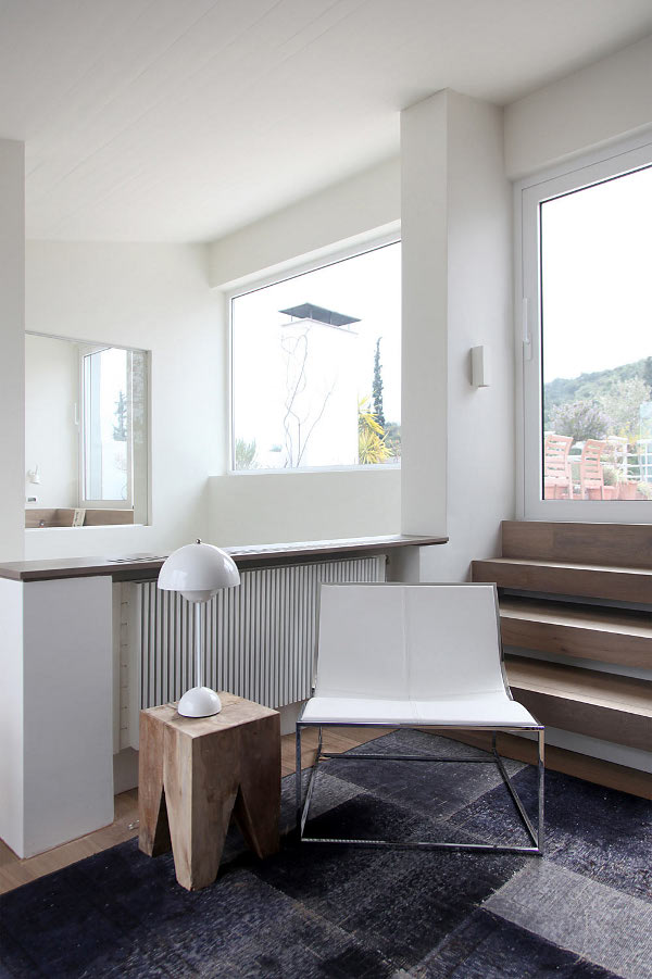 Crisp contemporary lines are warmed by wood and an earthy colour palette. Shots of colour are used sparingly to punctuate the calm spaces. Changes in level and the repetition of strong vertical elements define each zone. Pared back sophistication is the signature of this Lycabettus Penthouse by Athenian architecture firm esé studio. Modern Greek design at its best.