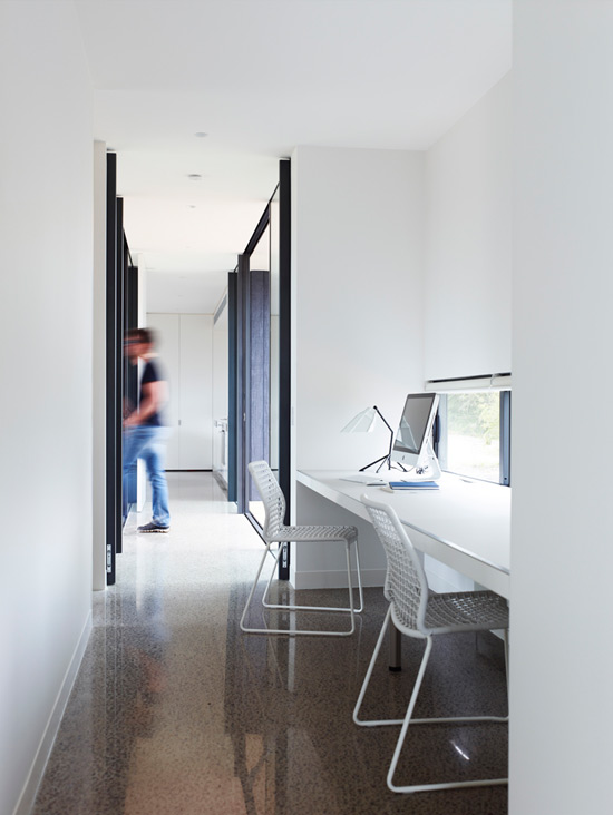 The word “journey” is a horribly overused cliché, but it is entirely apt when describing the visitor’s arrival at this Woodend House. Situated on a rural property, this house encourages a journey of discovery through a carefully choreographed experience of arrival. Totally engrained within its site, this house is a celebration of light, nature and the changing seasons.