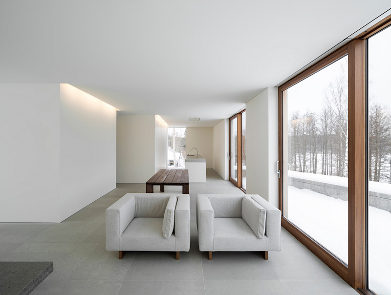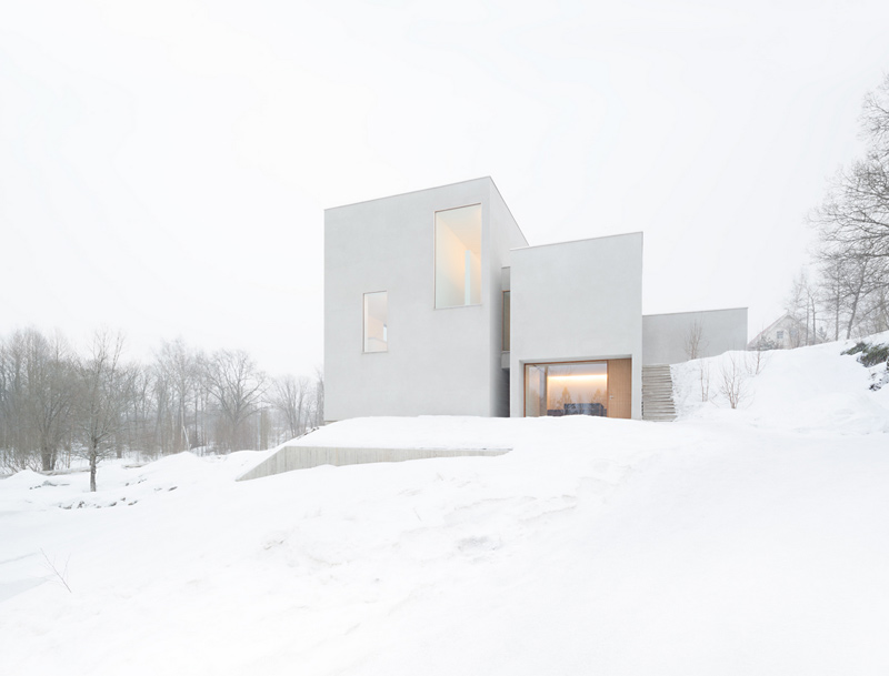 Step inside this black clad house designed by Danish firm Wienberg Architects and you enter a still world, a series of spaces that are calm and zen like. A carefully curated collection of colour and materials, black and white, concrete and wood veneer, strokes the senses. Soft and hard, warm and stark. Beautiful details only emphasis the simplicity.