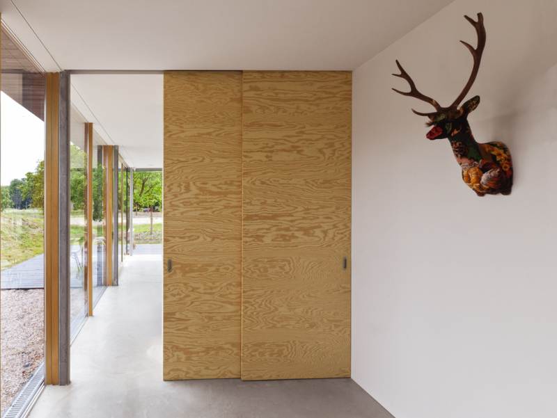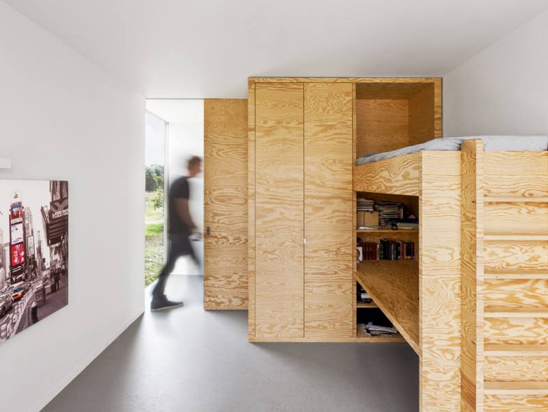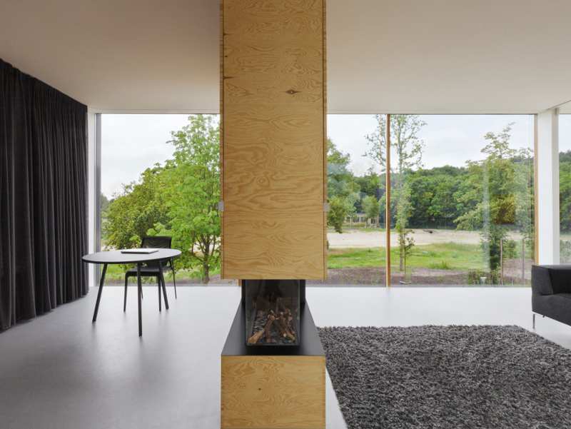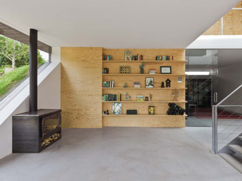 … with alcohol to make me fall for this home by Dutch interior architects i29. Modern and fabulous with a limited palette of grey and white. The hero though is the plywood used repeatedly throughout the home. An often overlooked, “second class” building material is the standout here. That and the open plan design, the fireplace, the walls of glass. No definitely the plywood ๐