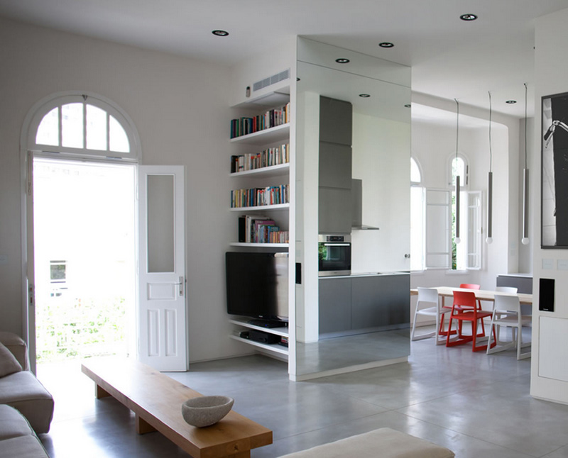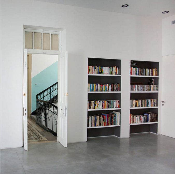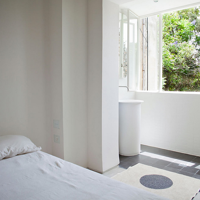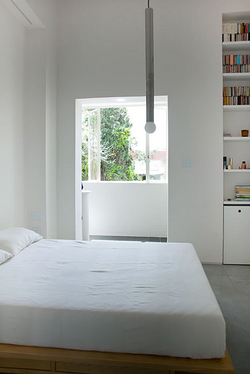 Here is another project by Chiara Ferrari Design that also caught my eye. The large open living room and minimalist kitchen are sooooo lovely. The studio has been appointed to refurbish an apartment within a historic building, in the Bialik area of Tel Aviv, into a minimalist home. The concept of seamlessness has been an important aspect in the design of the apartment. Its open-plan arrangement allows the natural light from the large existing windows to flow through the building, and the materials used, spans the surfaces with no visible joins. The high ceilings have allowed the space to split into levels to create flexible, functional spaces. A glazed extension provides the Master Bedroom and Bathroom with natural light and creates a scenic view into the local area. Adding locally sourced materials has kept the design true to the buildings past and surroundings.