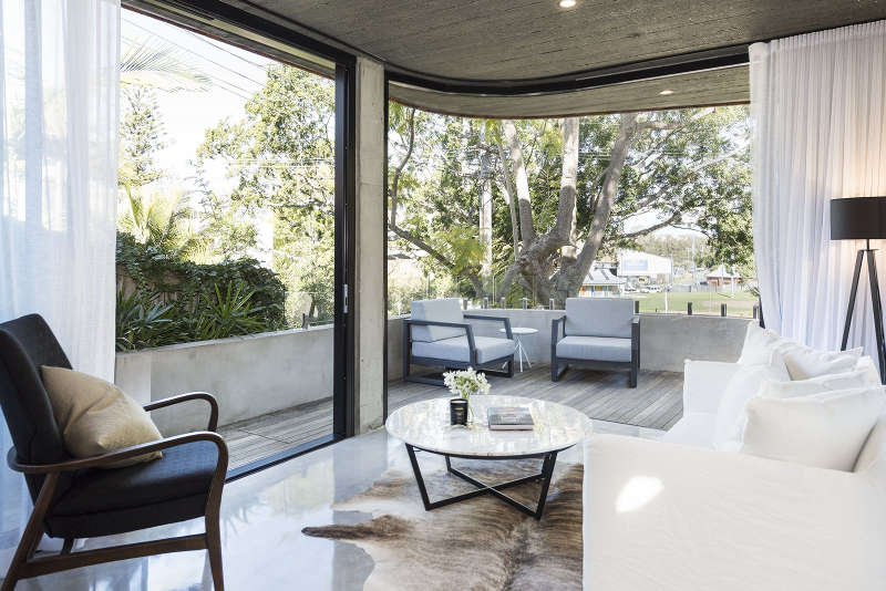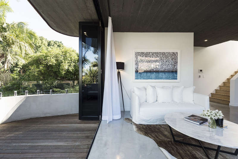 I’m stalking curved concrete and cedar panelling in the Sydney suburb of Rozelle. A strikingly modern home with seamless flow from inside to out through opening walls of glass. Cool minimalist nestled in suburban greenery. Link here while it lasts.