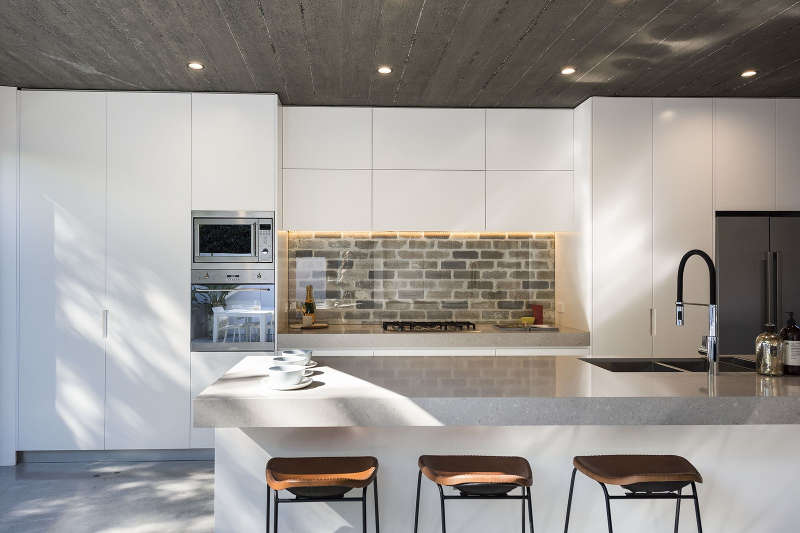 Nestling into the slope this split level house by Melbourne-based Technē Architecture + Interior Design sees light filled public spaces rotating off a central dark spine. Family living is bespoke, understated and stylish all the while not distracting from the beautiful bushland surrounds.