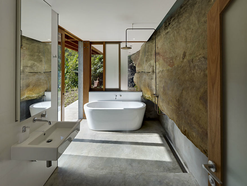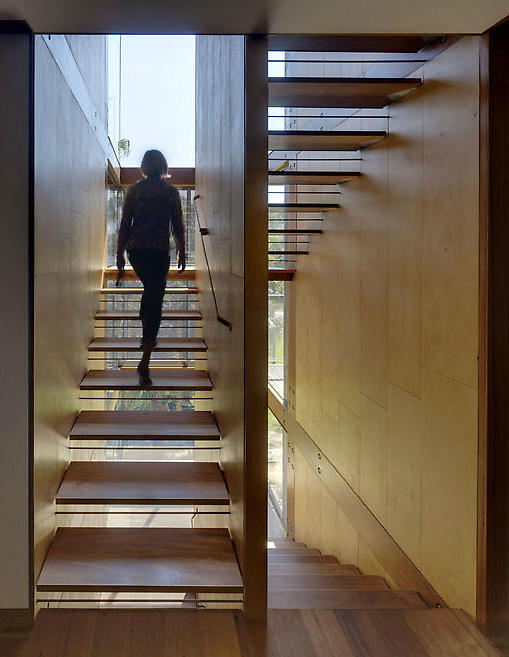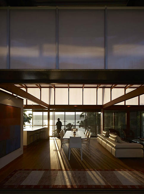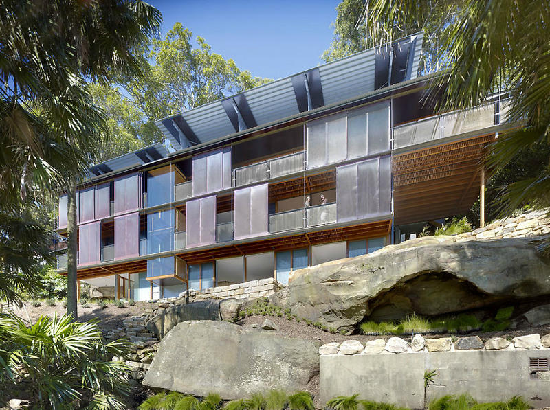 Perched on a precipice straining to take flight over the bay beyond. Anchored by ancient sandstone. Views and spaces, voids and solid roots. Just reach out your hand and touch the sky and water. Turn your back and find shelter. It’s all about nature… and nurture. House and site. Beauty and function. Fergus Scott Architects in collaboration with Peter Stutchbury Architecture
