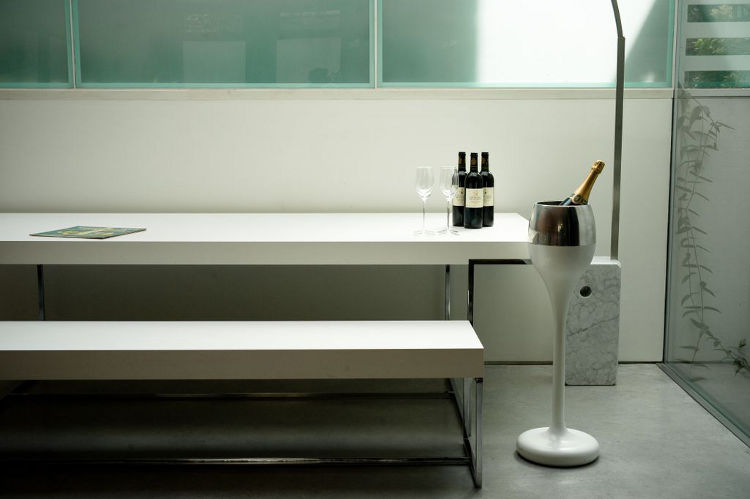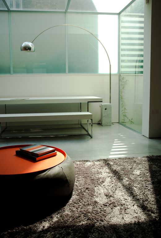 Gesamtkunstwerk. It’s about a totally integrated work of art, a holistic approach to design. Think about the architectural design of a building combined with interior design, furniture design, art and so on. Everything is considered for the whole. OK enough of the design lesson. Let’s look at this fab modern redesign, the latest residential project by Andy Martin Studio. It’s Andy’s family house in Notting Hill Gate. The existing 2 level mews house was redeveloped into a 4 level family home. A simple historical facade opens onto a space that it not expected. A space that is modern and considered, where solid plays against void, light against heavy, smooth against texture. But driving it all is the need for a family space, a workable albeit stylish home.