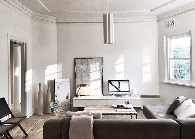 Monochromatic and moody this art deco apartment in Sydney’s Potts Point is raw yet polished with its stripped back floors and exposed brick in counterpoint to ornate plaster ceilings and slick modern kitchen. An oasis in the bustling inner-city by design studio Lawless & Meyerson.