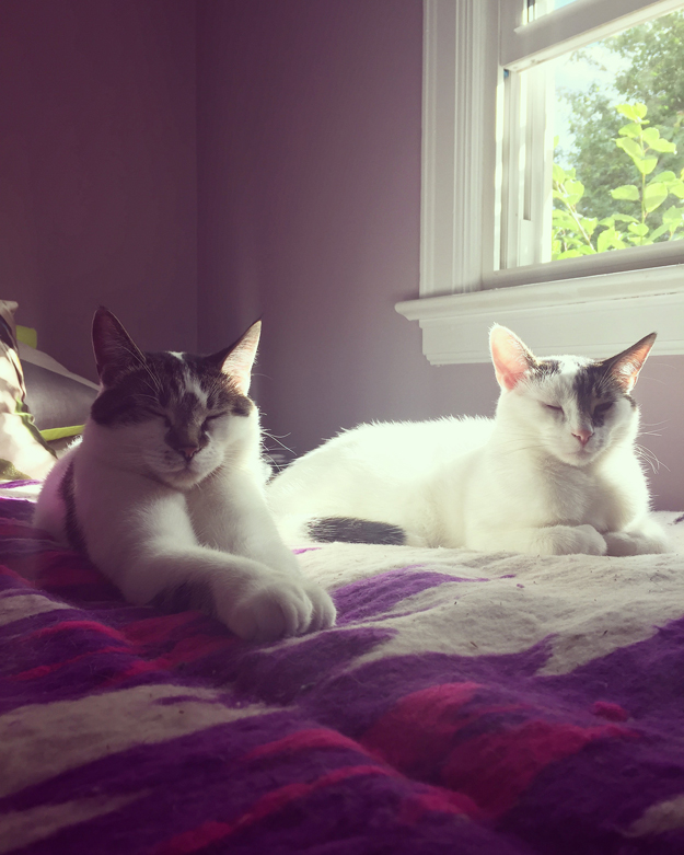 Here is Felix and his little shadow, Frankie (not so feral anymore) relaxing in the foyer on my leather Eames shell chair. (The flooring in there has since been redone – pics to come when all of the major work is done in a couple of weeks! If you follow me on Instagram there are some serious sneak peeks)