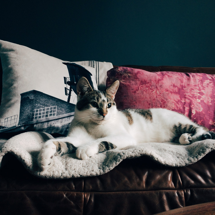 I know this isn’t inside of my home, but it’s my neighbour cat Mo. Ever since my cat has died he keeps me company in my garden and he makes my grieves a little less. This is his favourite place.