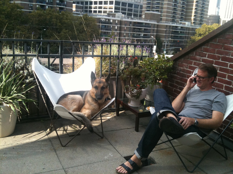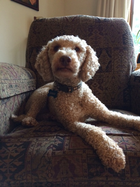 This is our dog Claudio or Mr. C, sitting on his favorite womb chair in Mill Valley, California
