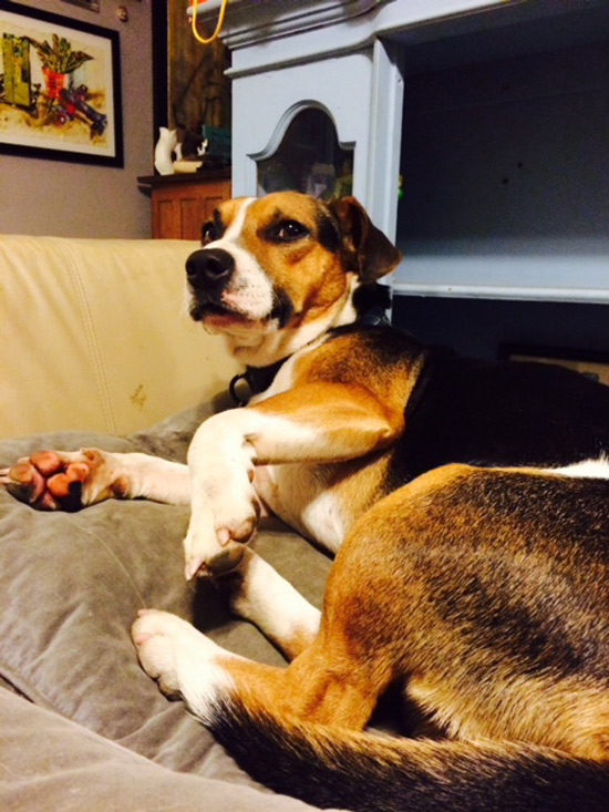It’s tough to work from home when I have these babies looking at me. Sadie is a Blue Heeler Hound mix pleading for a belly rub. Zuzu is a Rat Terrier imploring me to get off my computer and PAY ATTENTION! Sadie loves to sprawl on the mid century sofa I found in a thrift shop.